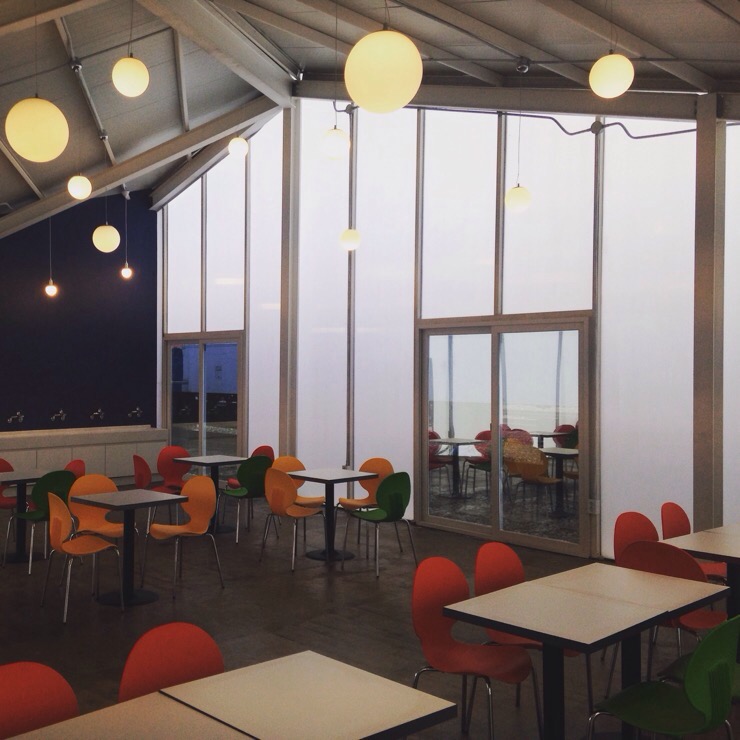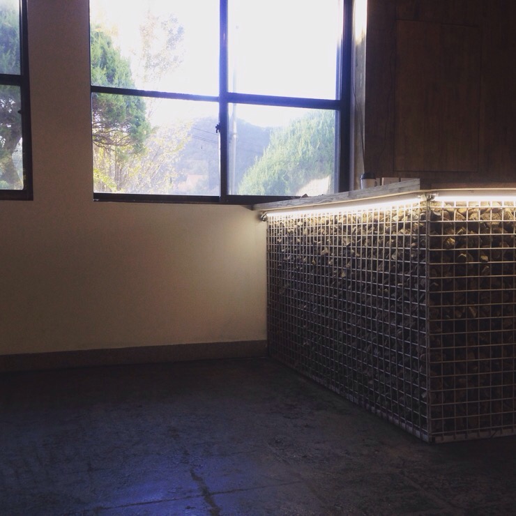 천정을 모두 걷어 낸 후. 대합실 옆의 역무실은 카페로 활용하기로 하였다.