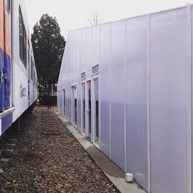 체험관은 가설 건축물로 추후 해체 등을 고려해 뼈대는 철골로 외피는 폴리카보네이트로 하였다. 또한 열차에 평행한 면에는 미러필름을 부착해 마치 체험관 안에 열차가 있는 듯한 착시를 의도했다.