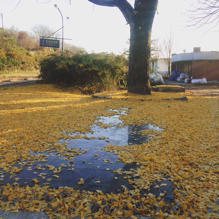 은행나무가 있는 플래폼은 가을에 특히 아름다운 장소이다. 은행잎 가득한 플래폼에 서면 그 고즈넉함에 이런 저런 상념에 빠지게 된다. 그 마당에 나를 비추고 하늘을 담을 바닥을 만들고 구둔과 하늘과 나를 관조하며 생각에 잠길 수 있는 의자를 하나 마련하였다.