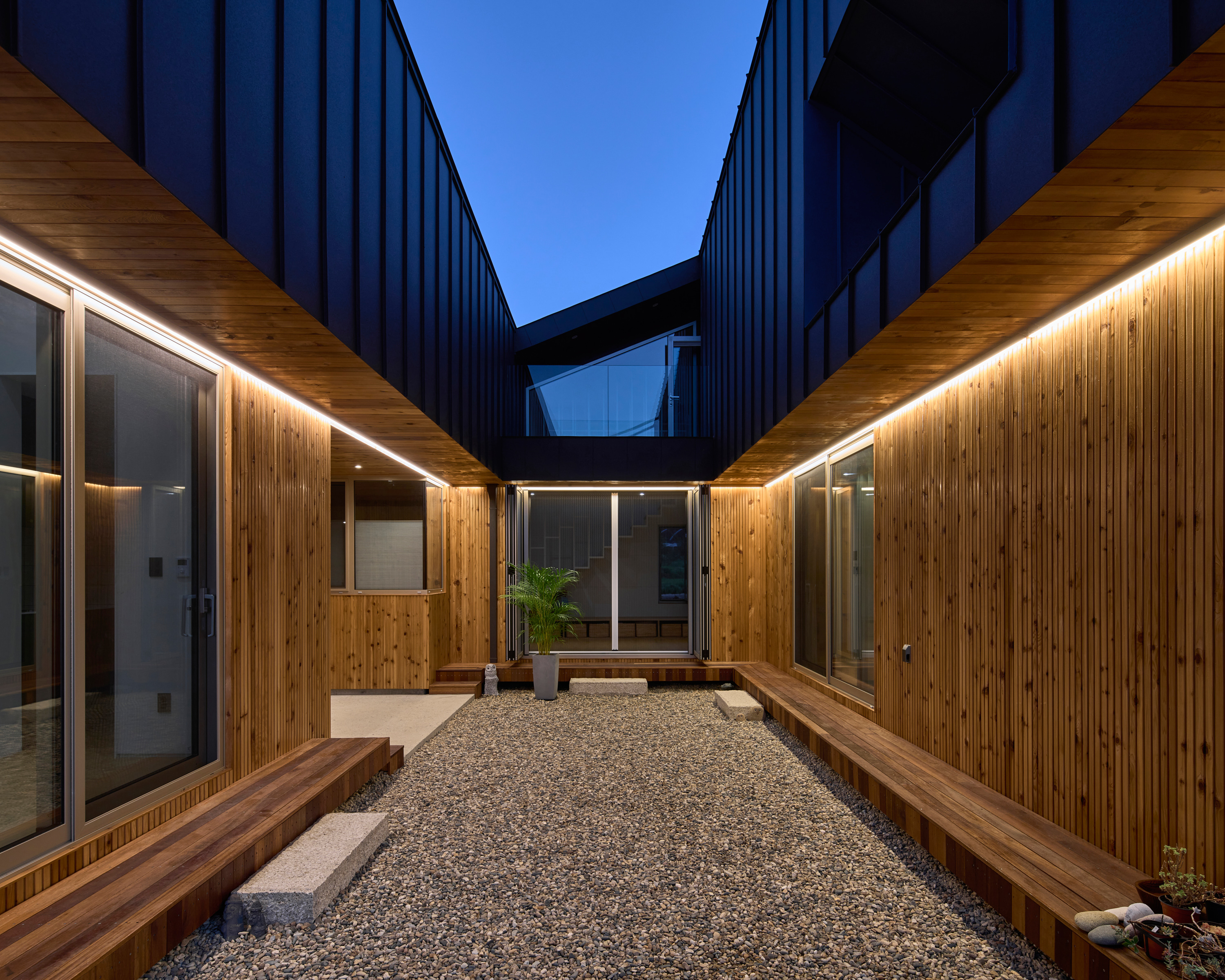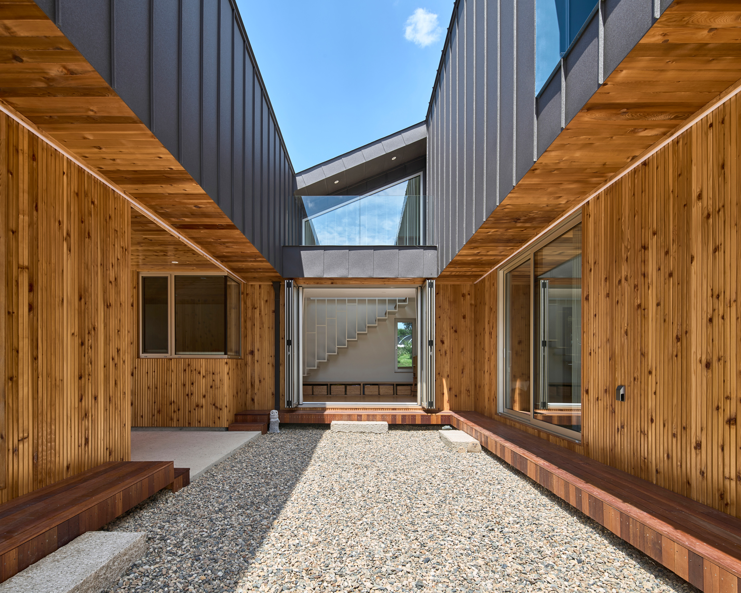 산을 닮은 박공지붕을 올리고 안마당 부분은 파내었다.
