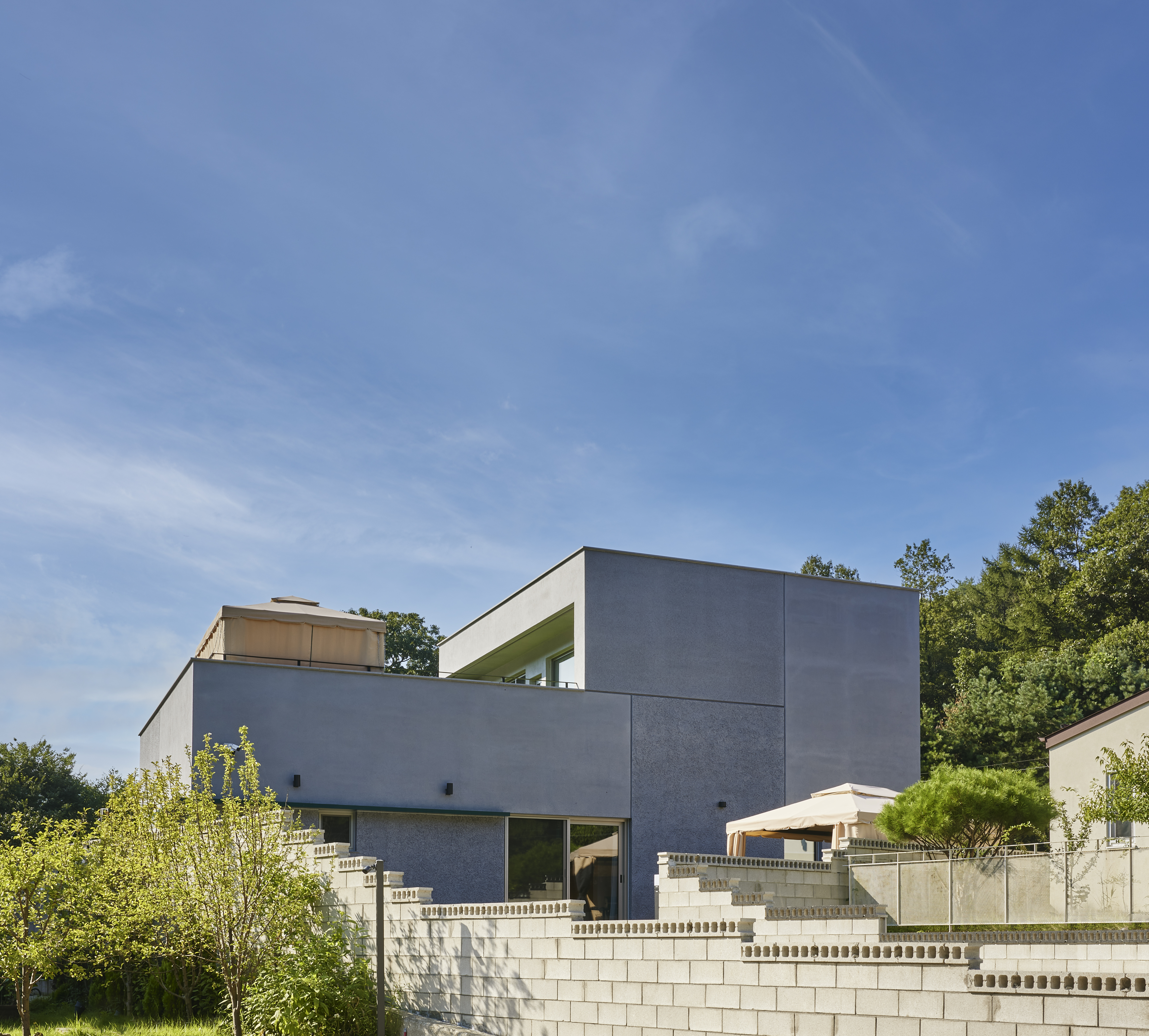 단순한 형태이지만 내부에 비밀스러운 공간을 배치하고 공간의 발견을 통한 재미를 주려했던 위의 계획은 인허가까지 마치고 시공사 견적 단계에서 무산되었다. 뒤늦게 꺼내놓은 예산은 실제 견적과 괴리가 컸다. 건축은 실현되지 않으면 의미가 없다. 늦었지만 실현을 위한 방법을 설계에서부터 다시 찾아야 했다. 분리된 매스를 합치고 면적도 축소했다. 이 과정에서 제안했던 아이디어는 반 이상 날아갔다.