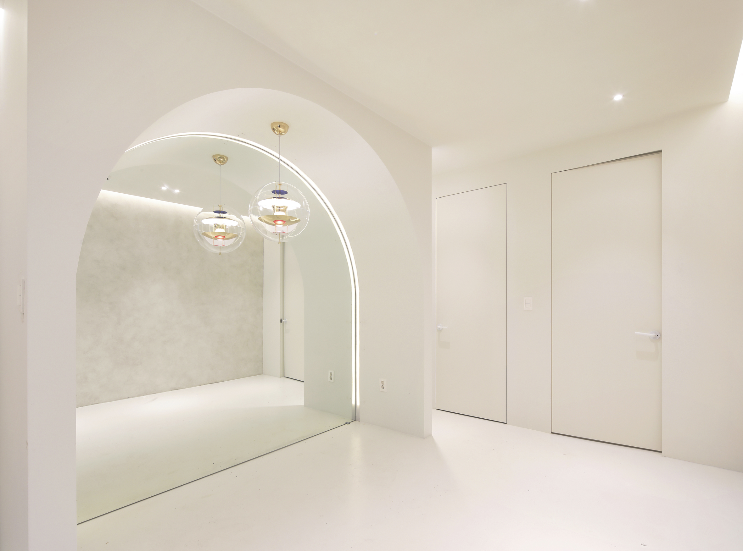단순한 매스마저도 드러내고 싶지 않아 사람의 시선이 닿는 정도의 높이까지는 미러스테인레스로 마감을 했다. 덕분에 거울처럼 숲을 반영하는 표면은 무한의 깊이를 가지게 되고 정원 앞에 서면 나와 또 다른 나를 바라보는 특별한 경험을 할 수 있게 되었다.