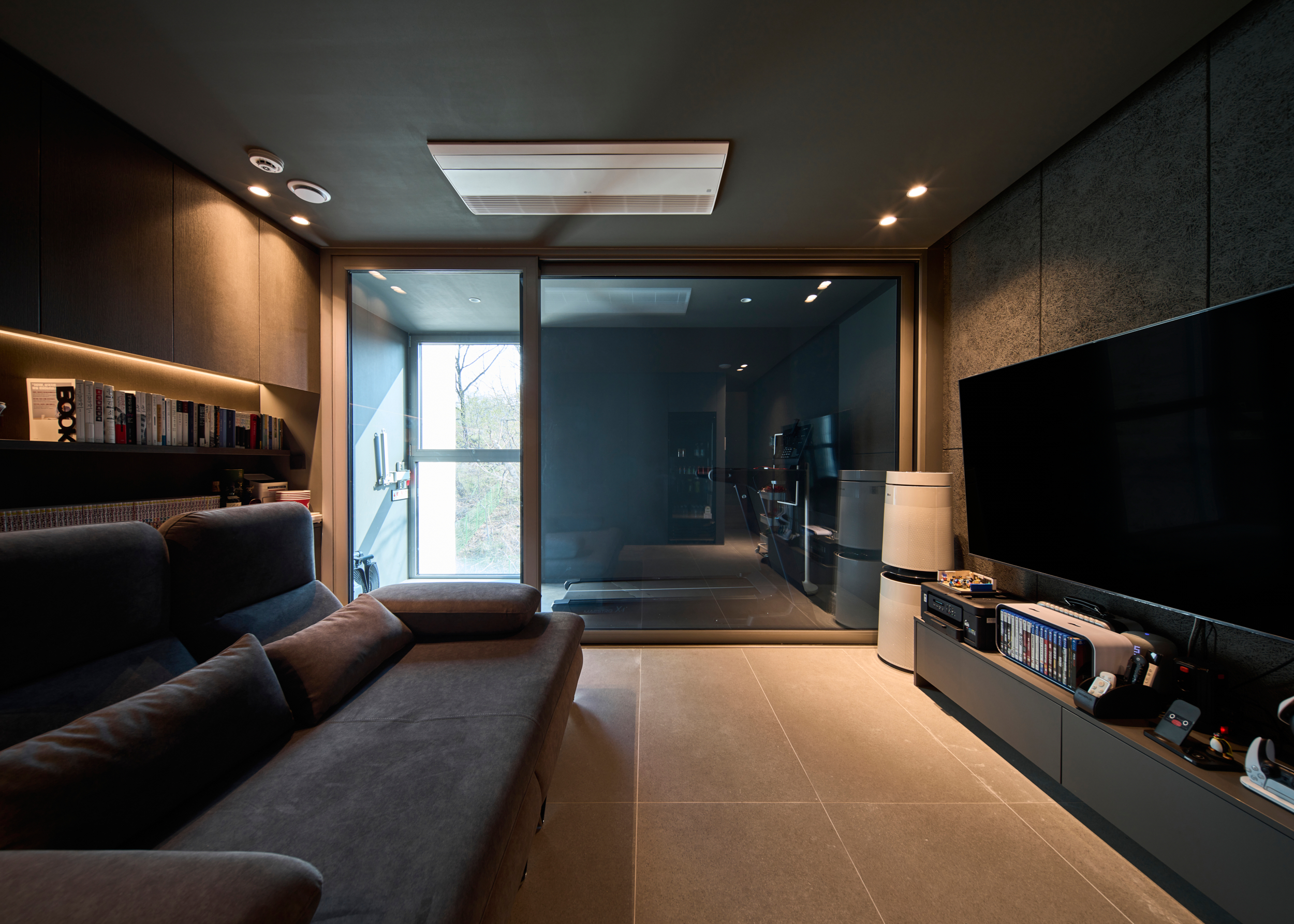 이런 일반적인 예측에 반전을 만들고 싶었다. 예각이 주는 공간의 긴장을 풀고 느슨하고 편안한 집이 되기 위해 둔간을 굴여 곡선을 만들었다.