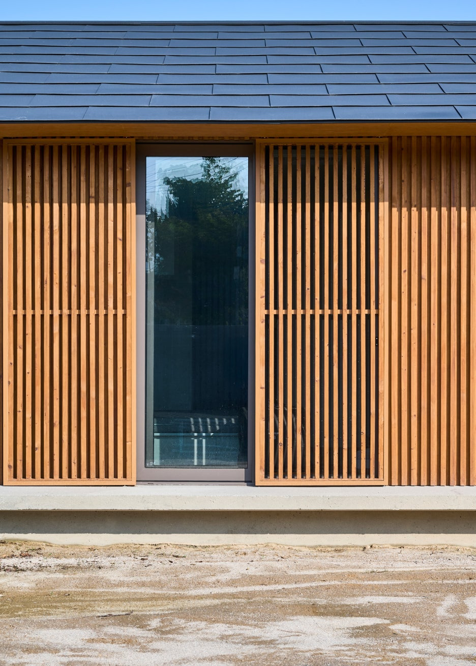 상부의 처마는 툇마루 보다 20cm 정도 돌출되는데, 외부 마감재인 목재를 보호하기 위한 목적과 동시에 비 내리는 툇마루에 앉았을 때 비를 맞지 않고 즐길만한 거리를 두고 싶어서였다.