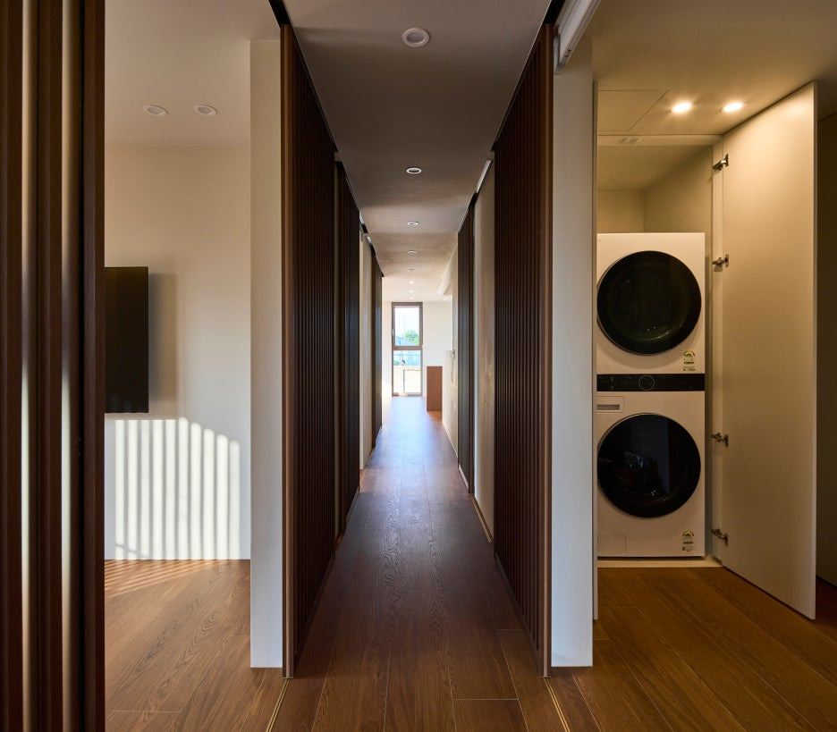 마당을 보는 것에 그치지 않고 적극적으로 나서서 즐기기 위해 집의 전면은 모두 툇마루가 설치된다. 집의 외부마감은 거의 목재가 사용되지만 툇마루는 콘크리트로 마감되어 있다. 들이치는 비에 대응하기 위함이고 햇빛을 받았을 때 따뜻한 온기를 남기고 싶어서이기도 했다.