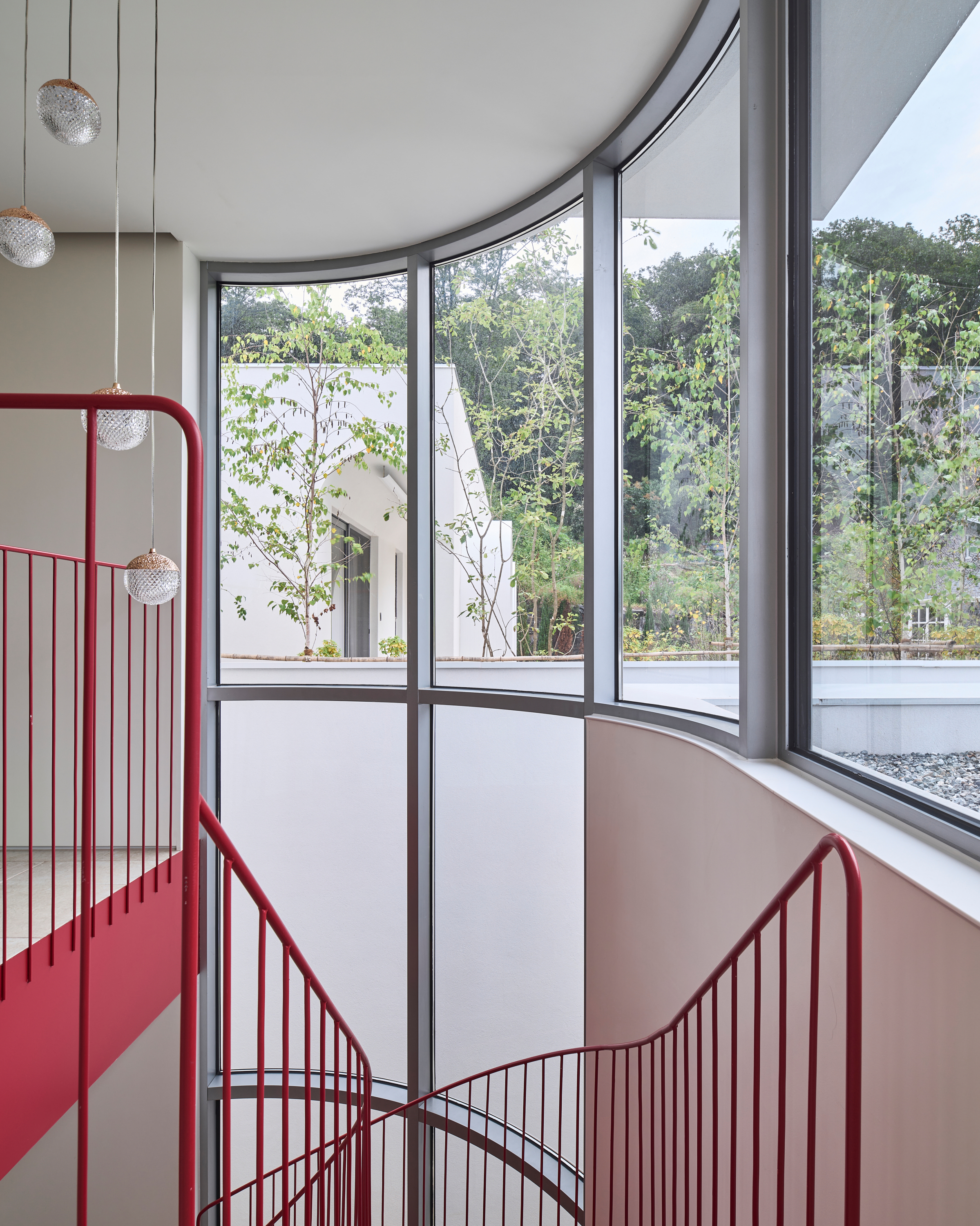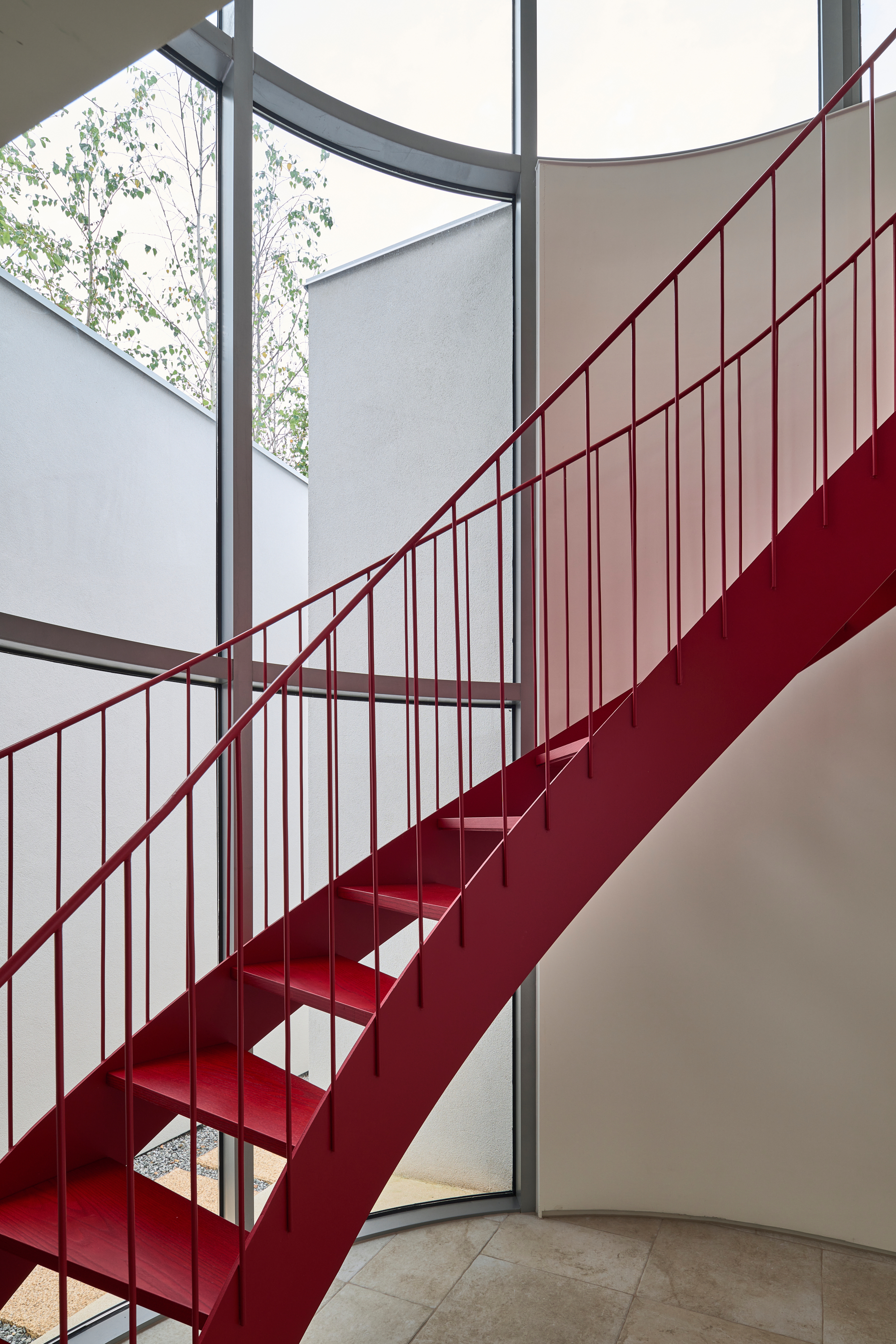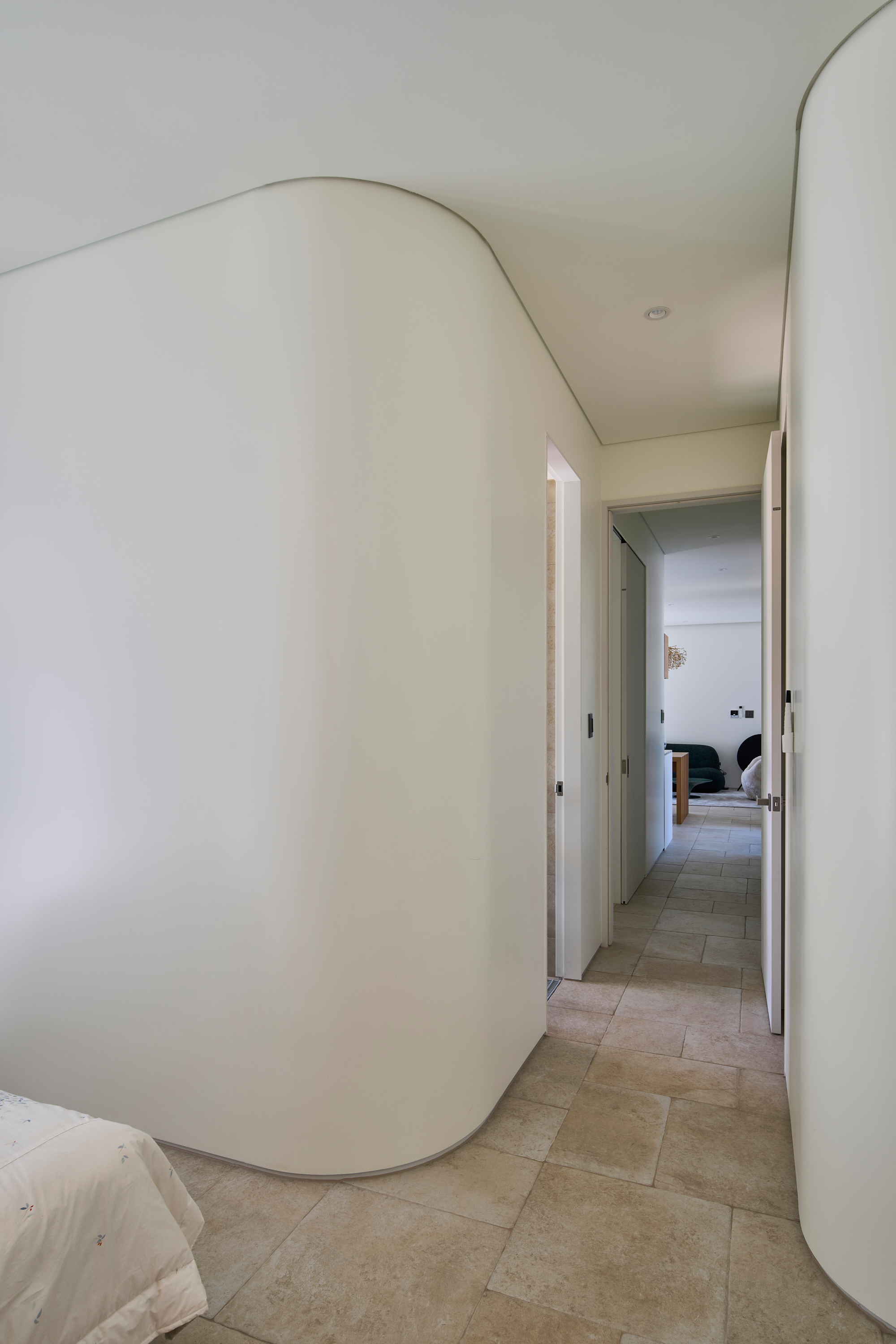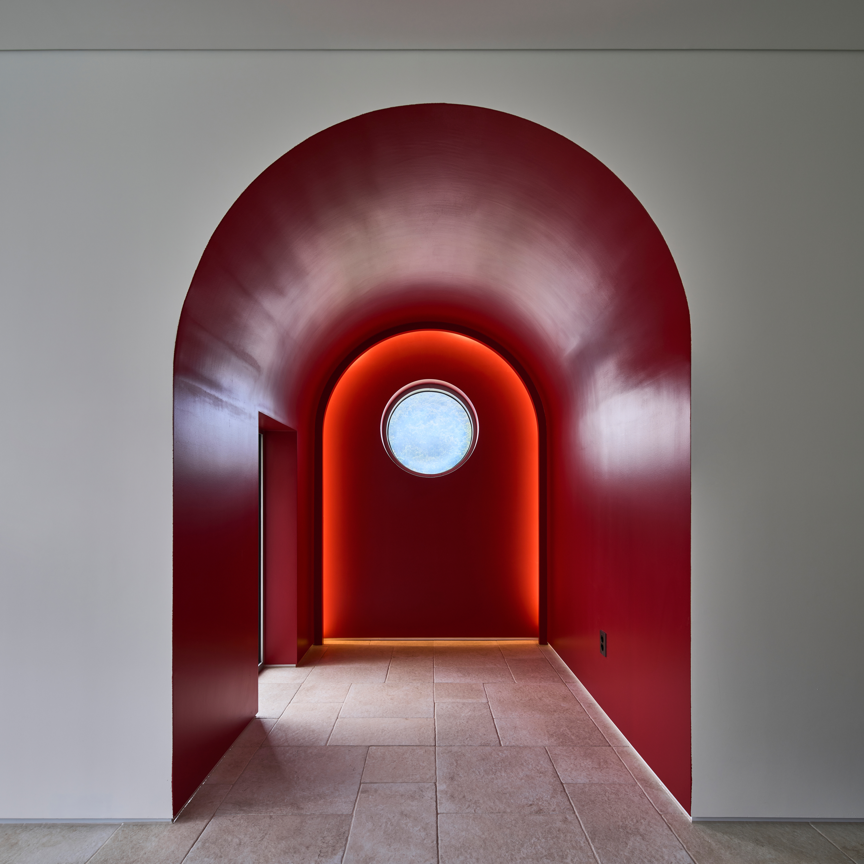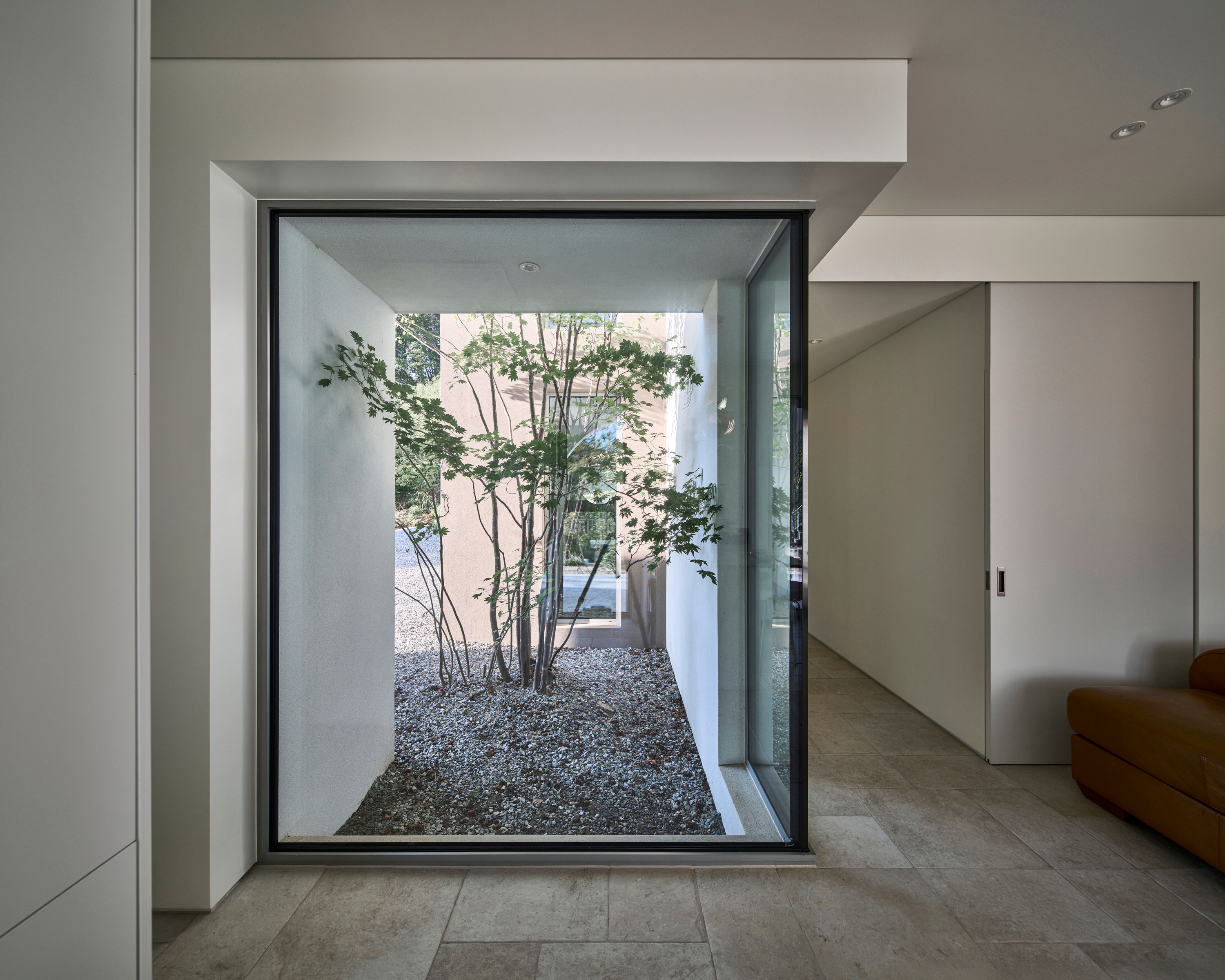 이 집의 가장 큰 특징은 연속된 아치로 형성된 회랑이다. 회랑의 사전적 정의는 ‘건물의 중요 부분을 둘러싸고 있는 지붕이 달린 복도‘이다. 하지만 이 집에서 회랑은 복도로서 기능하기 보다는 ’잠시 머물다 가는 곳’의 의미를 가진다. 한낮에는 남향의 햇빛이 아치 안에 머물다 가는데 집 안으로 간접광의 편안한 빛을 들이게 된다. 방과 이어진 회랑의 툇마루는 방의 나른한 머무름을 집 밖으로 옮겨오는 장소다. 그 옆에는 작은 욕조가 이어지는데, 툇마루가 변용된 머무름의 다른 모습이다. 가장 의미 있는 머묾은 회랑의 직각 방향으로 열린 아치의 프레임을 통해서 일어난다. 원경의 산과 하늘, 근경의 정원 풍경이 아치 안으로 들어와 시선을 잡아둔다. 아치 안에서 사계절이 머 물다, 갈 것이었다.