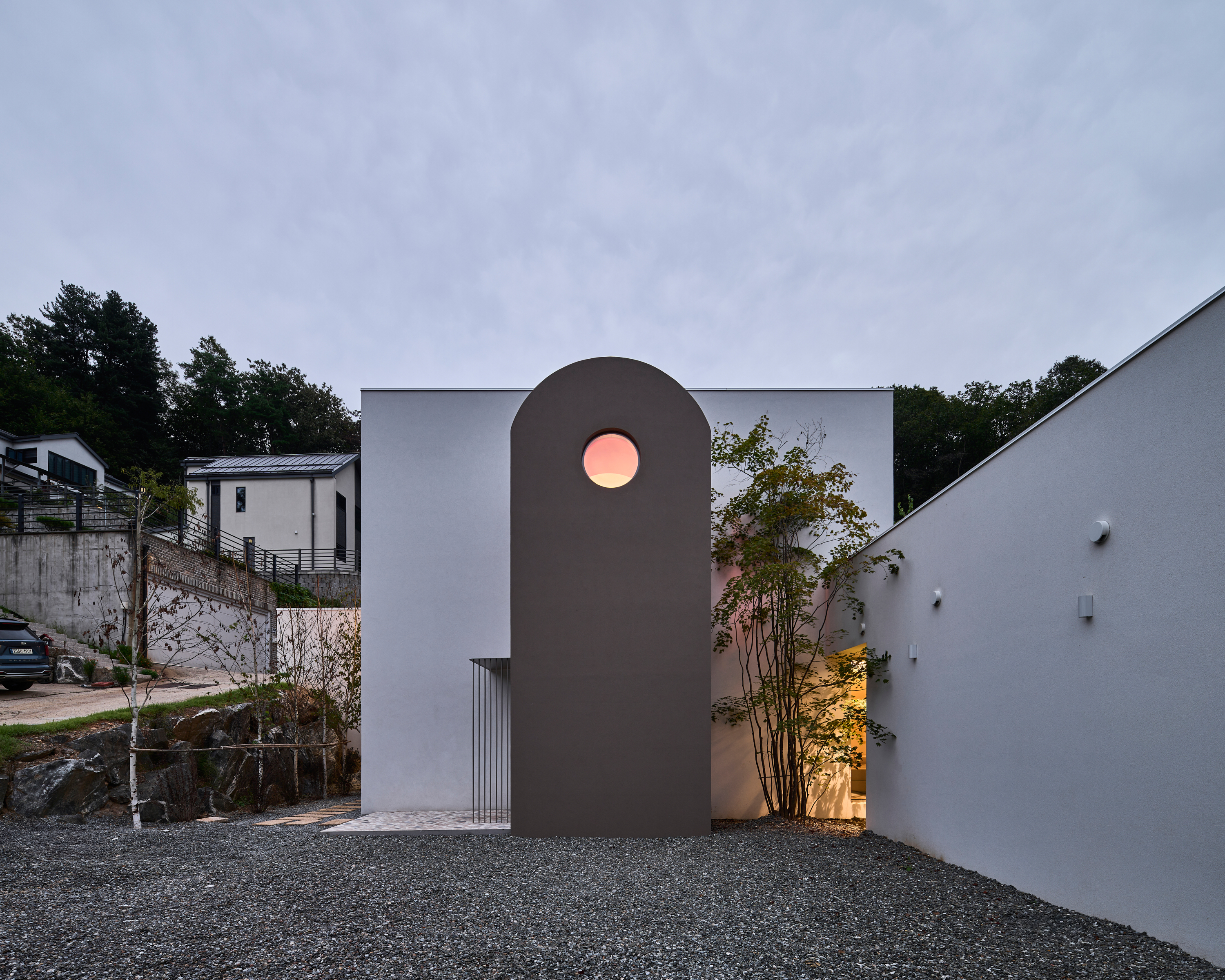 건축주는 두 가족이 동시에 사용할 수 있는 주택을 원했다. 그러면서 두 가족이 서로에게 방해가 되거나 방해 받지 않는 환경을 요구했다. 직원 가족을 위한 배려이자 부부 만의 오롯한 휴식을 위한 당연한 바람이었다.