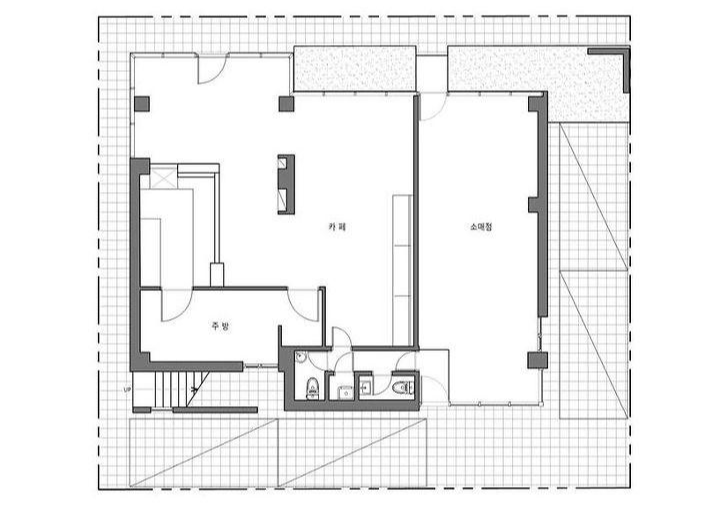 우리는 점포와 주택을 각각 풀어야 할 개별적 문제가 아닌 서로가 하나로 묶여 영향을 미치는 방정식과 같이 다루기로 했다. 영종도가 가진 지역적 특수성(인천국제공항, 카지노)을 고려해 가족 단위의 세입자보다는 독신 가구를 대상으로 하는 쉐어하우스(공유 주택)의 형식으로 주거를 계획하고 점포는 쉐어하우스를 관리, 지원하고 입주자의 사랑방 기능을 하는 카페(건축주가 직접 운영)로 구성하기로 했다.