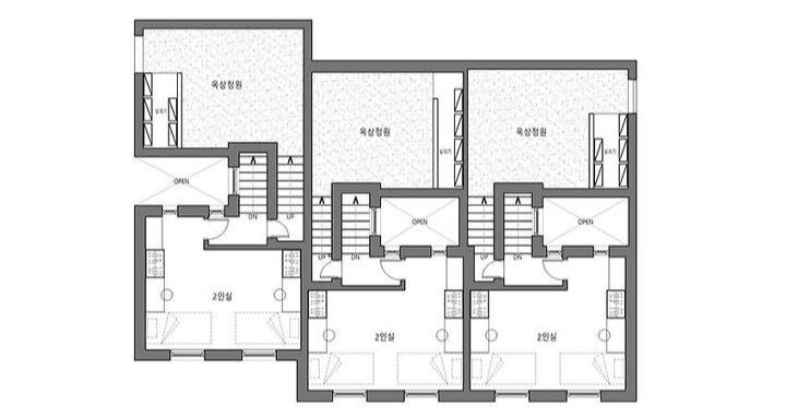 우리는 점포와 주택을 각각 풀어야 할 개별적 문제가 아닌 서로가 하나로 묶여 영향을 미치는 방정식과 같이 다루기로 했다. 영종도가 가진 지역적 특수성(인천국제공항, 카지노)을 고려해 가족 단위의 세입자보다는 독신 가구를 대상으로 하는 쉐어하우스(공유 주택)의 형식으로 주거를 계획하고 점포는 쉐어하우스를 관리, 지원하고 입주자의 사랑방 기능을 하는 카페(건축주가 직접 운영)로 구성하기로 했다.
