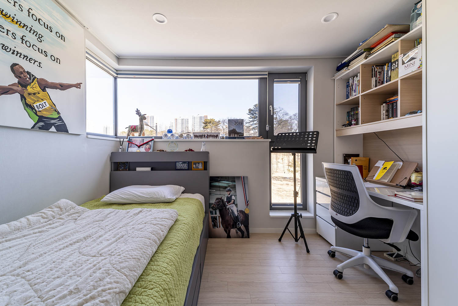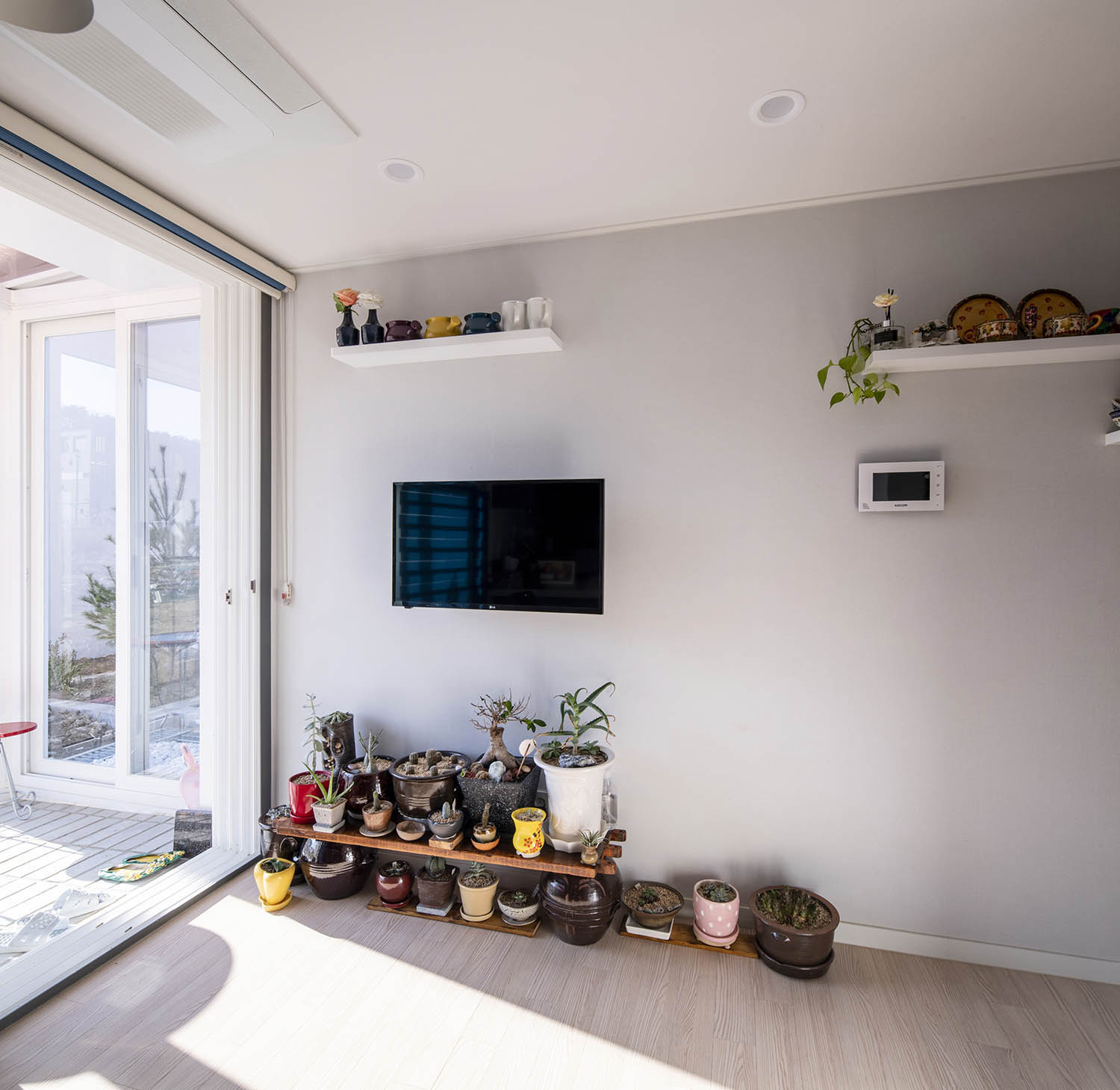 건축주는 한 발을 내디뎌 빛에 닿고, 두 발을 내디뎌 바람과 조우하는 장소가 집 곳곳에 있길 바랐다. 가족이 마주 앉아 이야기를 나눌 때, 배경의 집과 공원의 풍경이 이야기를 살찌우는 공간이 있었으면 좋겠다고 했다. 더하여 같이 사는 다른 가족에게도 동등한 기회가 제공되고 같이 누리며 살 수 있기를 원했다.