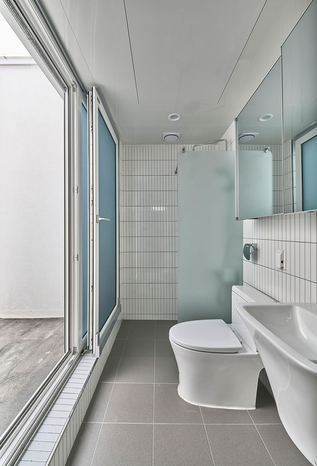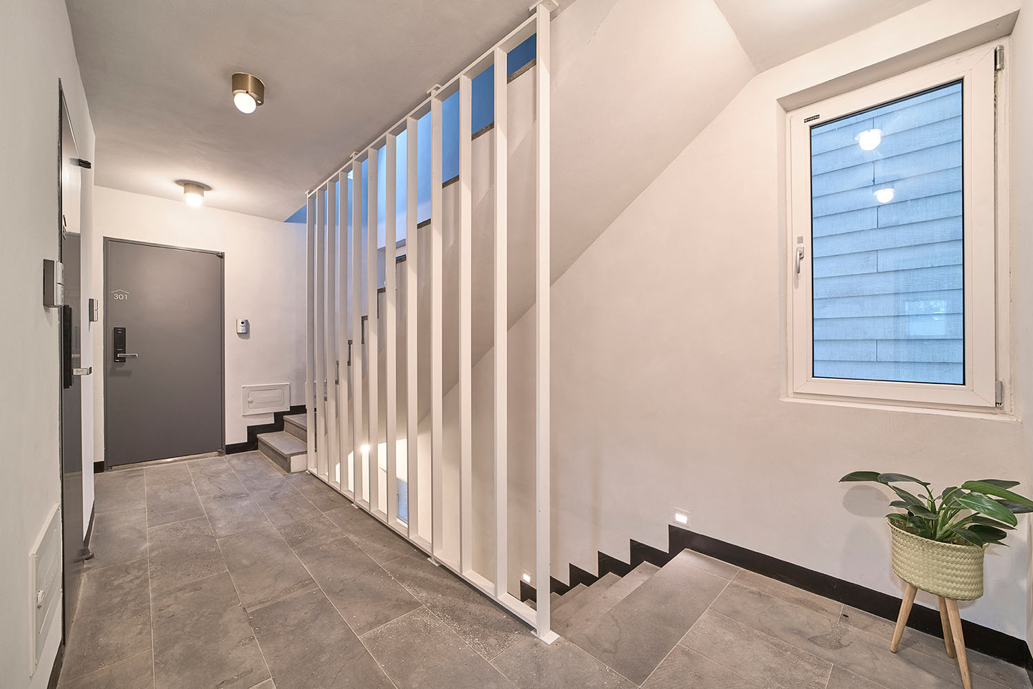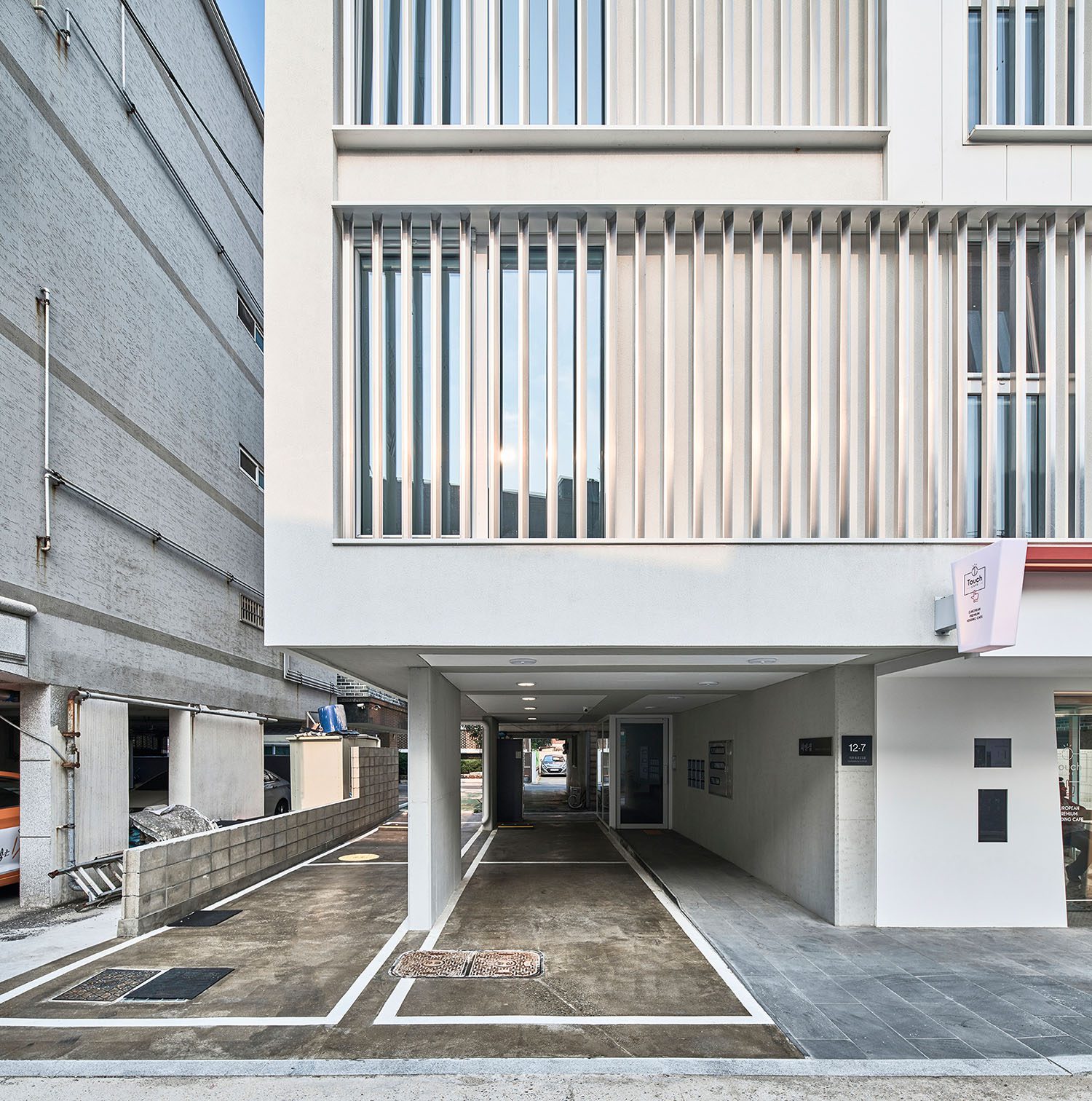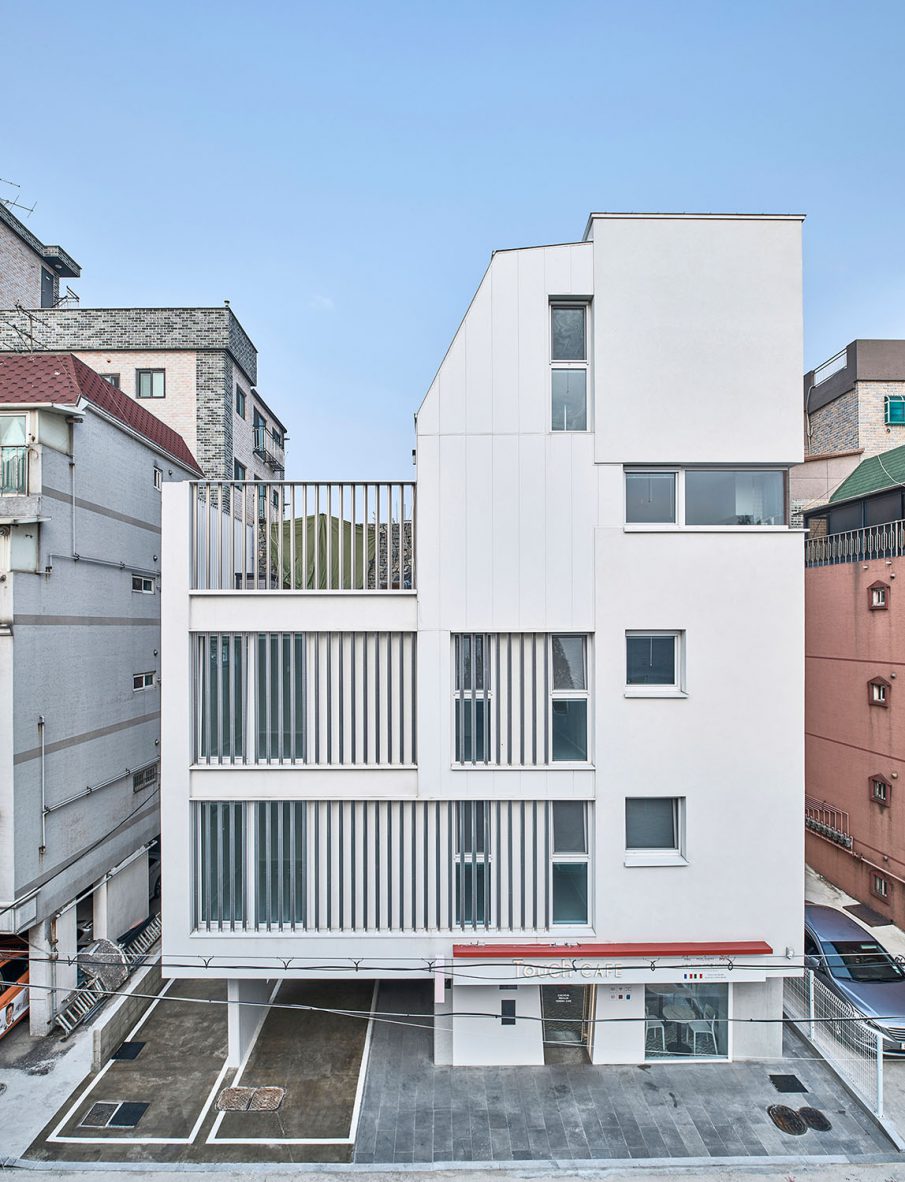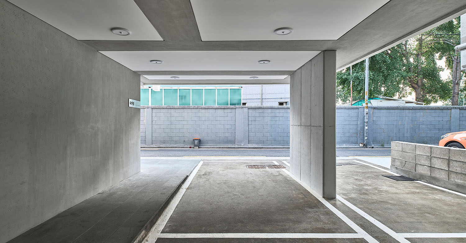 아파트와는 다른 물리적 조건의 도심 속 작은 공동주택이 ‘버는 집’의 노골적 자세가 아닌 ‘사는 집’으로서 배려를 담으려면 어찌해야 할 것인가. 우린 집에 표정을 담아 보기로 했다. 아파트가 가지는 편리성, 쾌적성의 장점을 따라가기 어렵다면 그 그늘인 익명성과 무표정만큼은 벗어나 보면 어떨까 하는 생각이었다. 표정은 주체에 대해 객체가 느끼는 감정의 모습으로, 집이 표정을 갖는다는 것은 그곳에 사는 사람이 단순히 그 공간을 점유하는 것에서 더 나아가 그 집과 감정을 교류한다는 것이고 ‘사는 집’이 되기 위한 중요한 기초가 될 것이라 생각했다. 표정을 만들기 위해 우리가 사용한 장치는 한쪽이 사선으로 접힌 ㄷ자 형태의 알루미늄 루버였다. 이는 단순히 면과 선의 다층적 구성을 통해 외부에서 보이는 표정의 변화만을 의도했다기보다는 비록 작은 원룸이지만 사는 사람이 창을 통해 밖과 소통하는 과정에서 집이 가질 수 있는 다양한 표정을 감지할 수 있기를 기대함이 더 컸다.