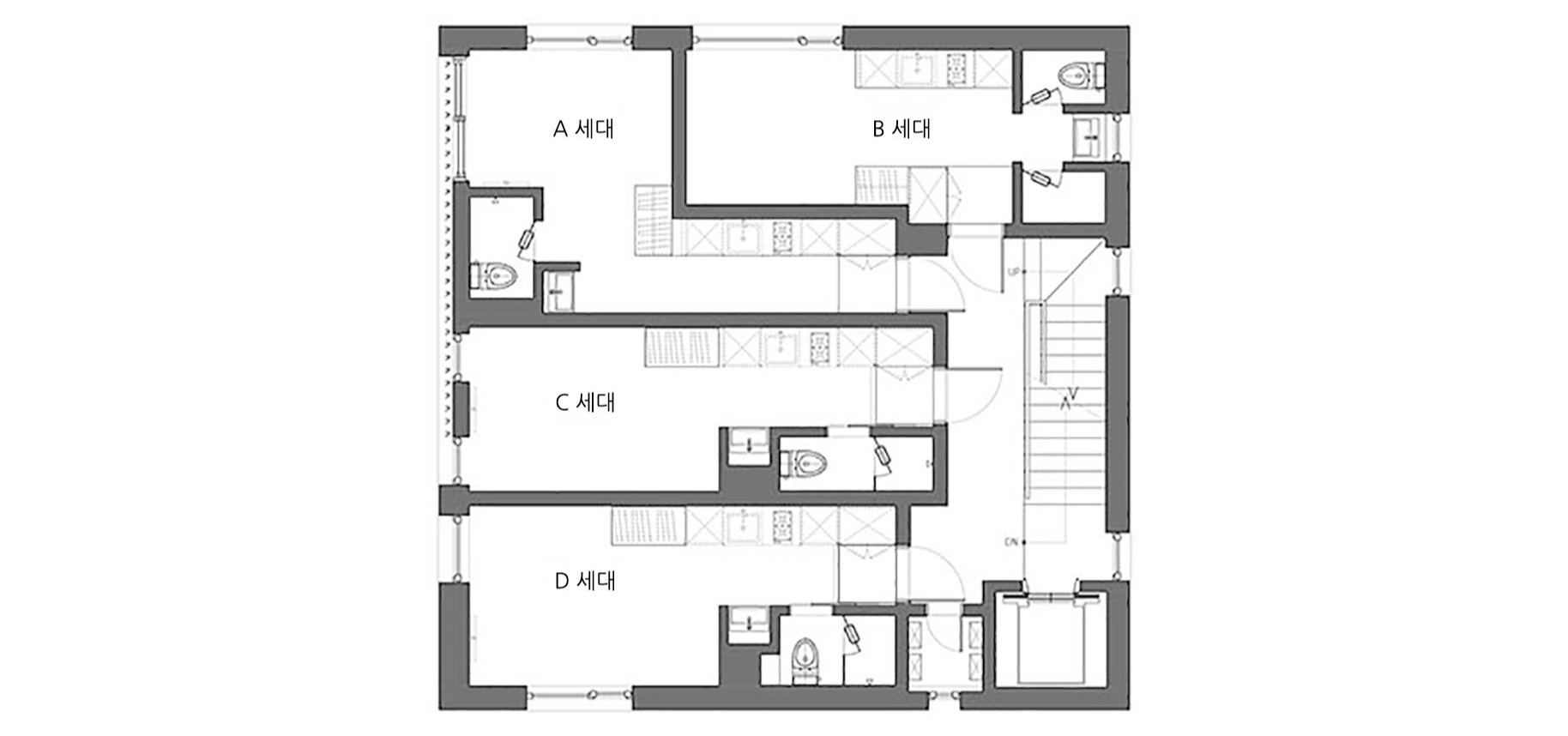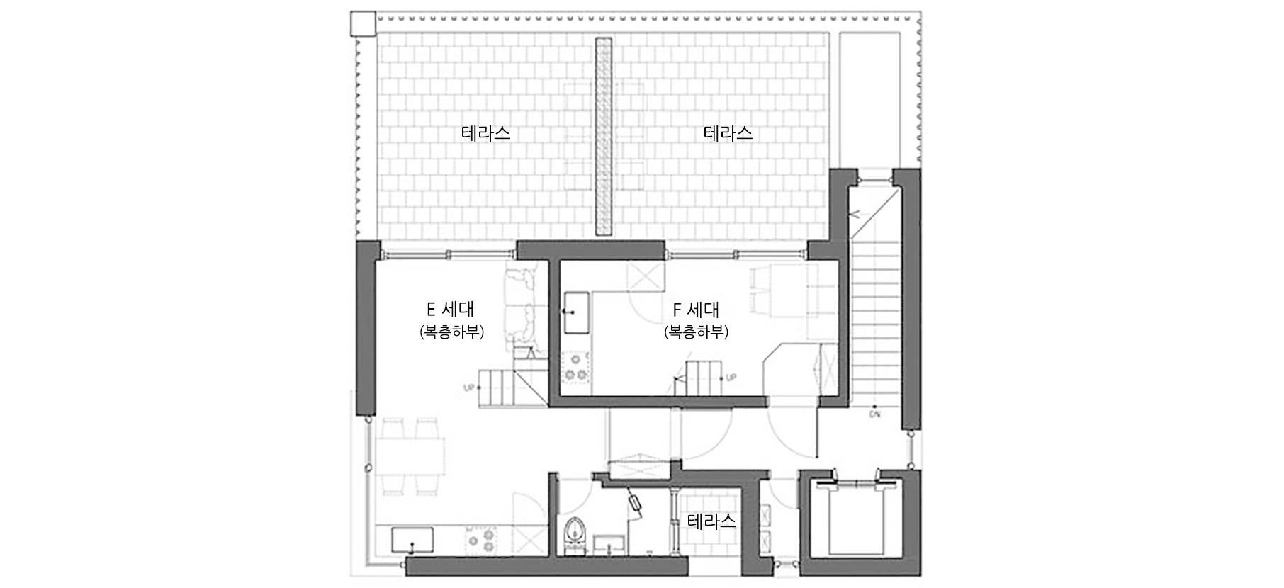 임대를 목적으로 하는, ‘버는 집’ 짓기를 계획한 건축주에게 우리가 해준 말은 얼마만큼의 양으로 이 땅을 채워야 더 많이 벌 수 있는지 ‘버는 집’의 노골적인 자세보다 ‘사는 집’에 대한 고민을 함께 해보자는 것이었다. 그것은 ‘사는 집’으로서의 역할에 충실할 때에 ‘버는 집’의 가치가 하락하지 않고 지속 가능하다 믿었기 때문이다.