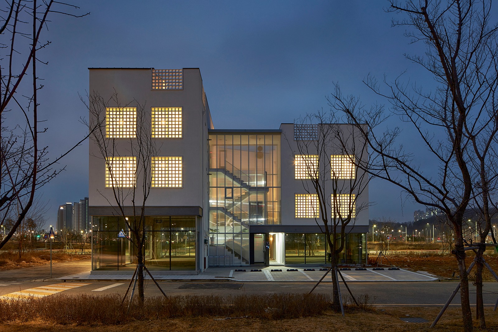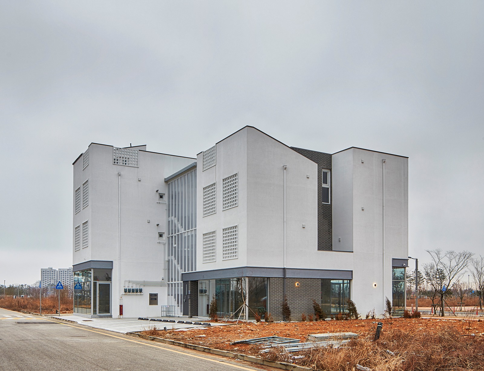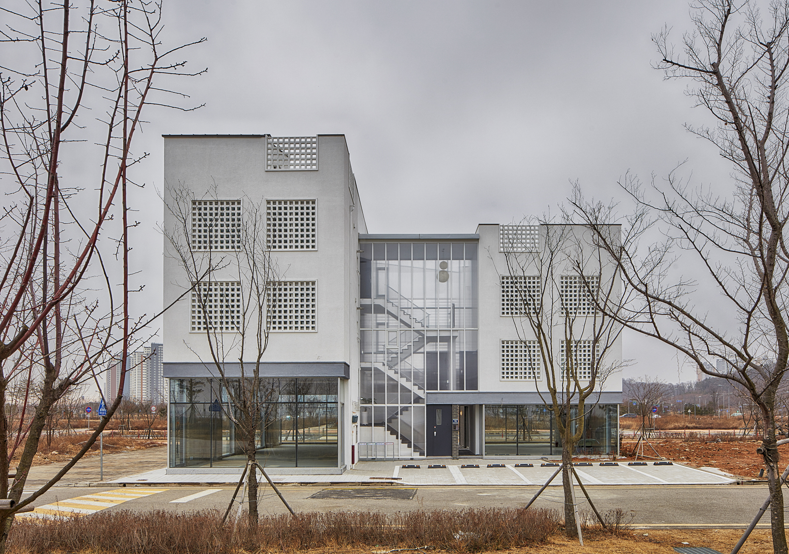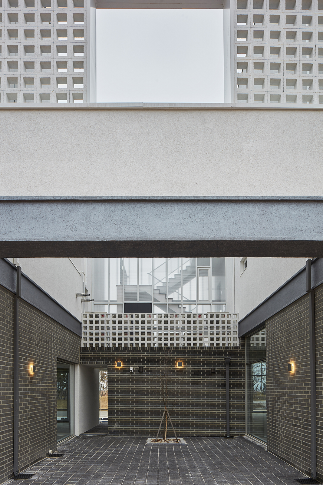 상가주택의 익숙한 인상을 만드는 것 중의 또 다른 하나는 창이다. 창은 ‘보고 싶은 것’과 ‘보이는 것’이 끊임없이 충돌하는 계면으로, 내가 사는 집이라면 그 욕망의 조절은 의외로 쉬울 수 있으나 임대를 목적으로 한 상황에선 ‘보고 싶은 쪽’에 기울고 가급적 큰 이중창을 내고 난간을 설치하는 방식으로 나타난다. 그리고 이러한 상황은 우리에게 익숙한 상가주택, 빌라의 인상을 만들어 냈다. 우린 이 익숙함에서 벗어나기 위한 장치로 이중창 밖에 큐블럭을 설치했으며, 이는 ‘보이는 것’의 두려움을 고려한 장치이자, 보는 방식을 달리하는 장치이기도 하다.