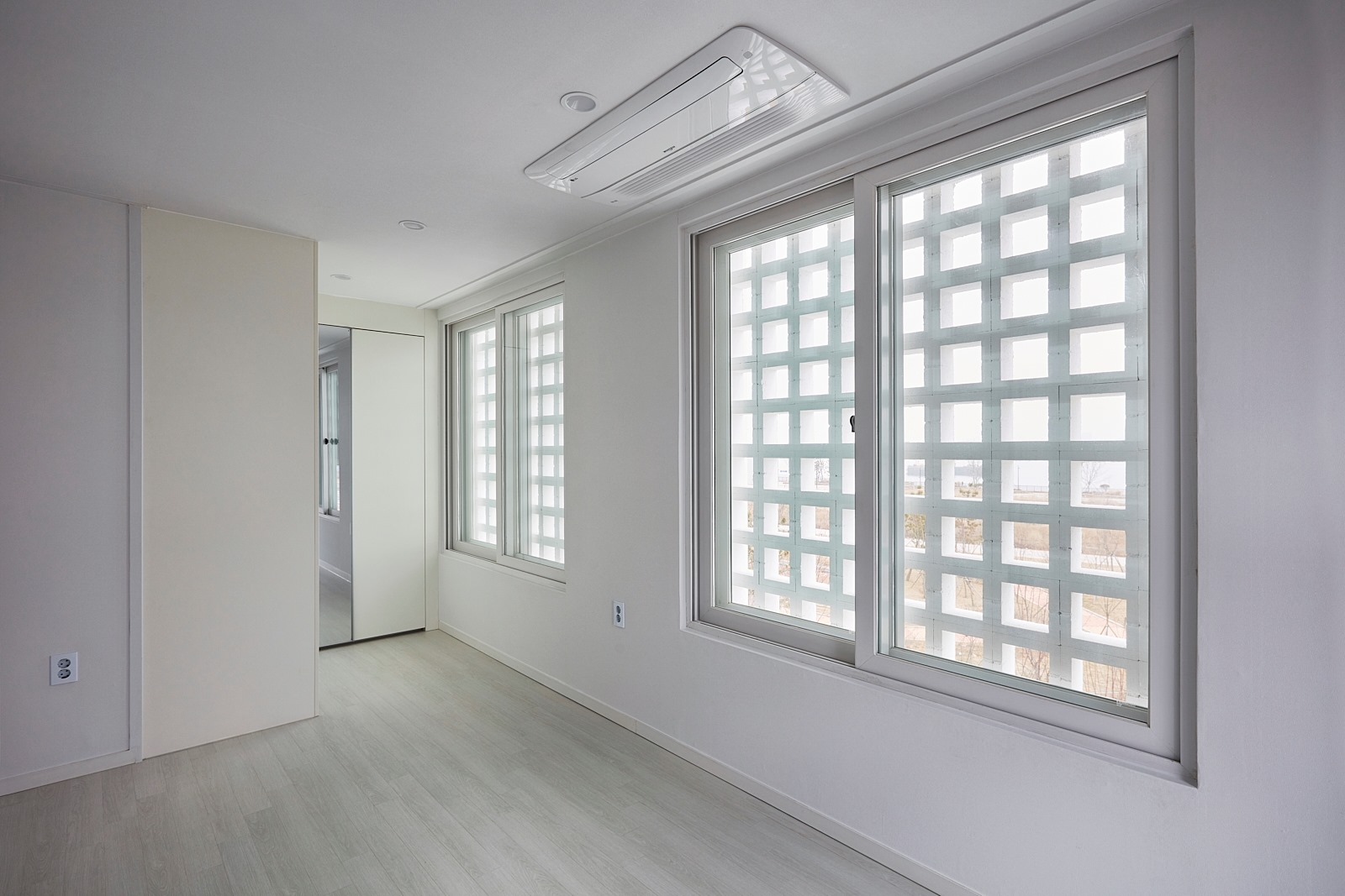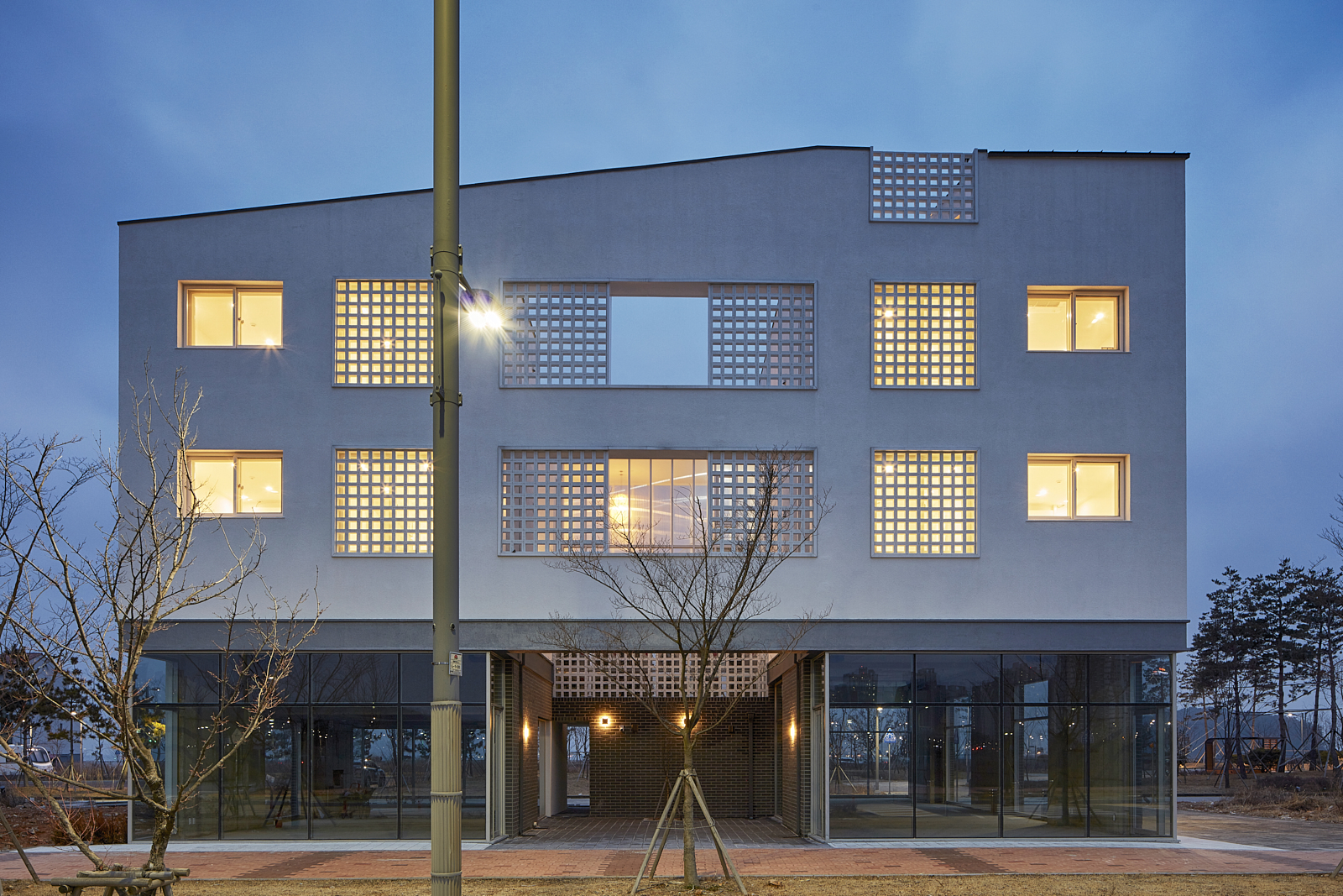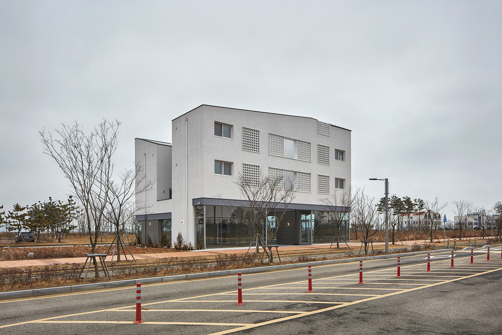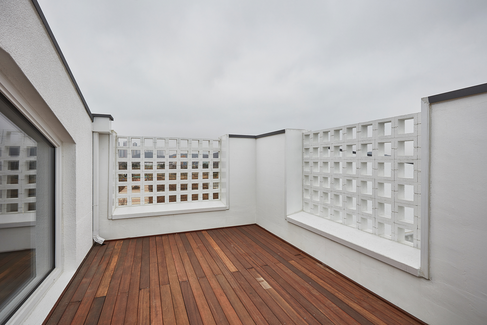 상가주택의 익숙한 인상을 만드는 것 중의 또 다른 하나는 창이다. 창은 ‘보고 싶은 것’과 ‘보이는 것’이 끊임없이 충돌하는 계면으로, 내가 사는 집이라면 그 욕망의 조절은 의외로 쉬울 수 있으나 임대를 목적으로 한 상황에선 ‘보고 싶은 쪽’에 기울고 가급적 큰 이중창을 내고 난간을 설치하는 방식으로 나타난다. 그리고 이러한 상황은 우리에게 익숙한 상가주택, 빌라의 인상을 만들어 냈다. 우린 이 익숙함에서 벗어나기 위한 장치로 이중창 밖에 큐블럭을 설치했으며, 이는 ‘보이는 것’의 두려움을 고려한 장치이자, 보는 방식을 달리하는 장치이기도 하다.