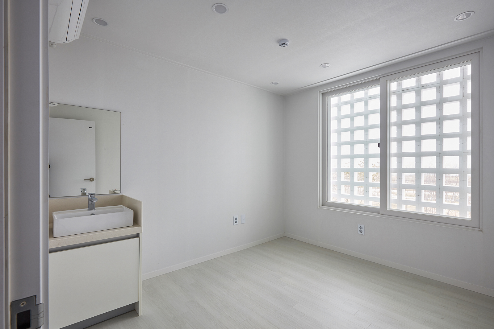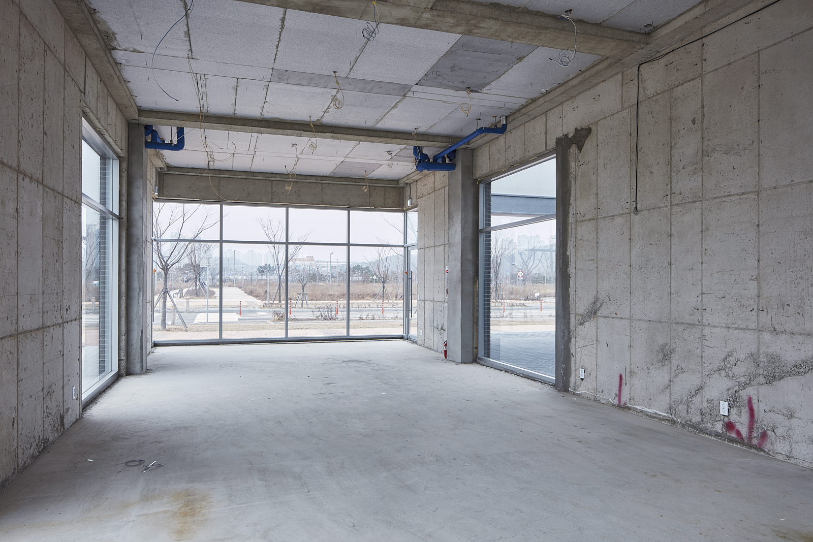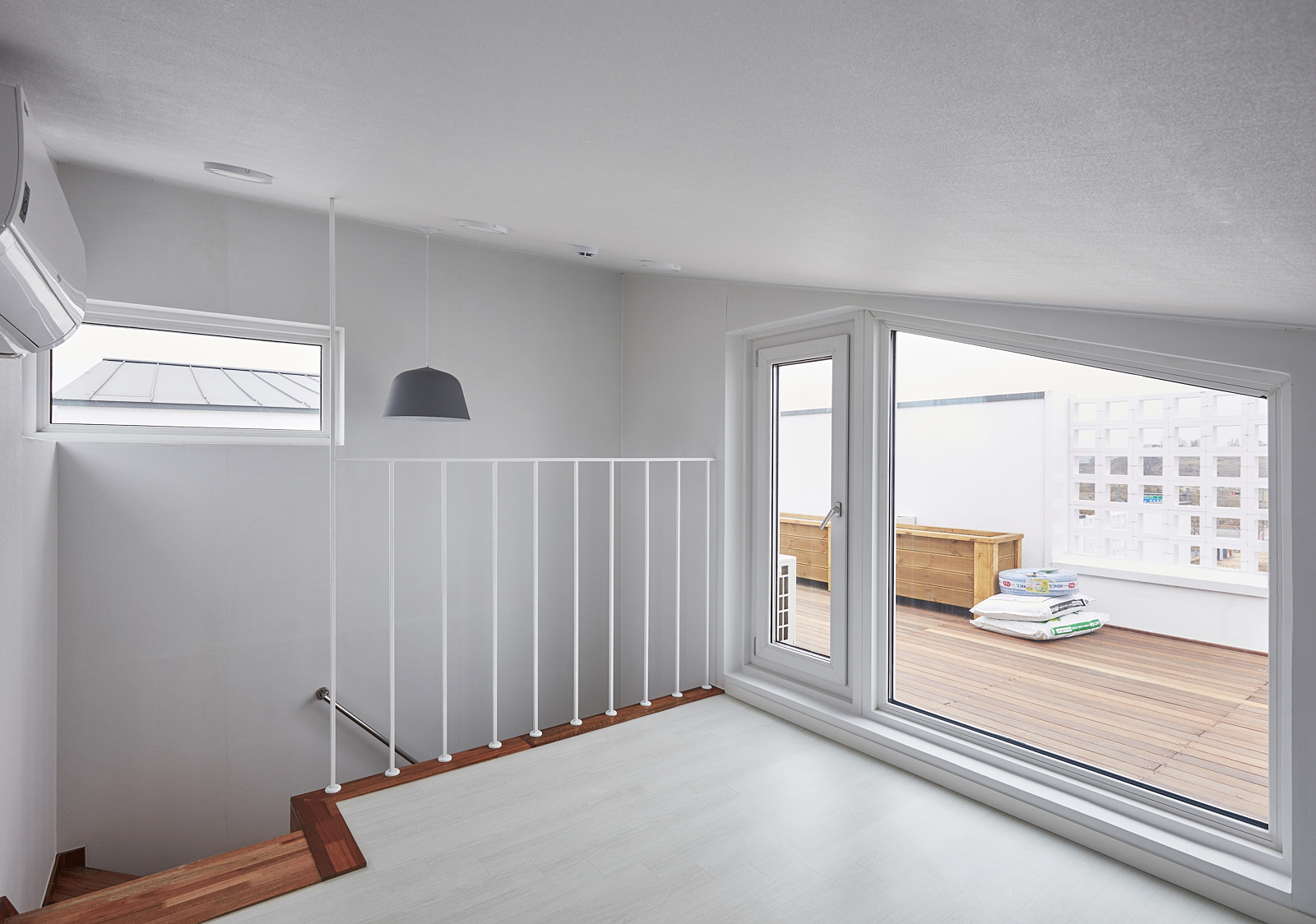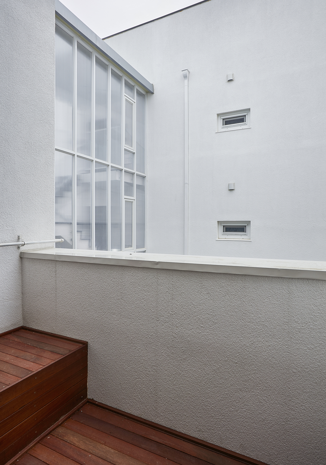 상가주택의 익숙한 인상을 만드는 것 중의 또 다른 하나는 창이다. 창은 ‘보고 싶은 것’과 ‘보이는 것’이 끊임없이 충돌하는 계면으로, 내가 사는 집이라면 그 욕망의 조절은 의외로 쉬울 수 있으나 임대를 목적으로 한 상황에선 ‘보고 싶은 쪽’에 기울고 가급적 큰 이중창을 내고 난간을 설치하는 방식으로 나타난다. 그리고 이러한 상황은 우리에게 익숙한 상가주택, 빌라의 인상을 만들어 냈다. 우린 이 익숙함에서 벗어나기 위한 장치로 이중창 밖에 큐블럭을 설치했으며, 이는 ‘보이는 것’의 두려움을 고려한 장치이자, 보는 방식을 달리하는 장치이기도 하다.