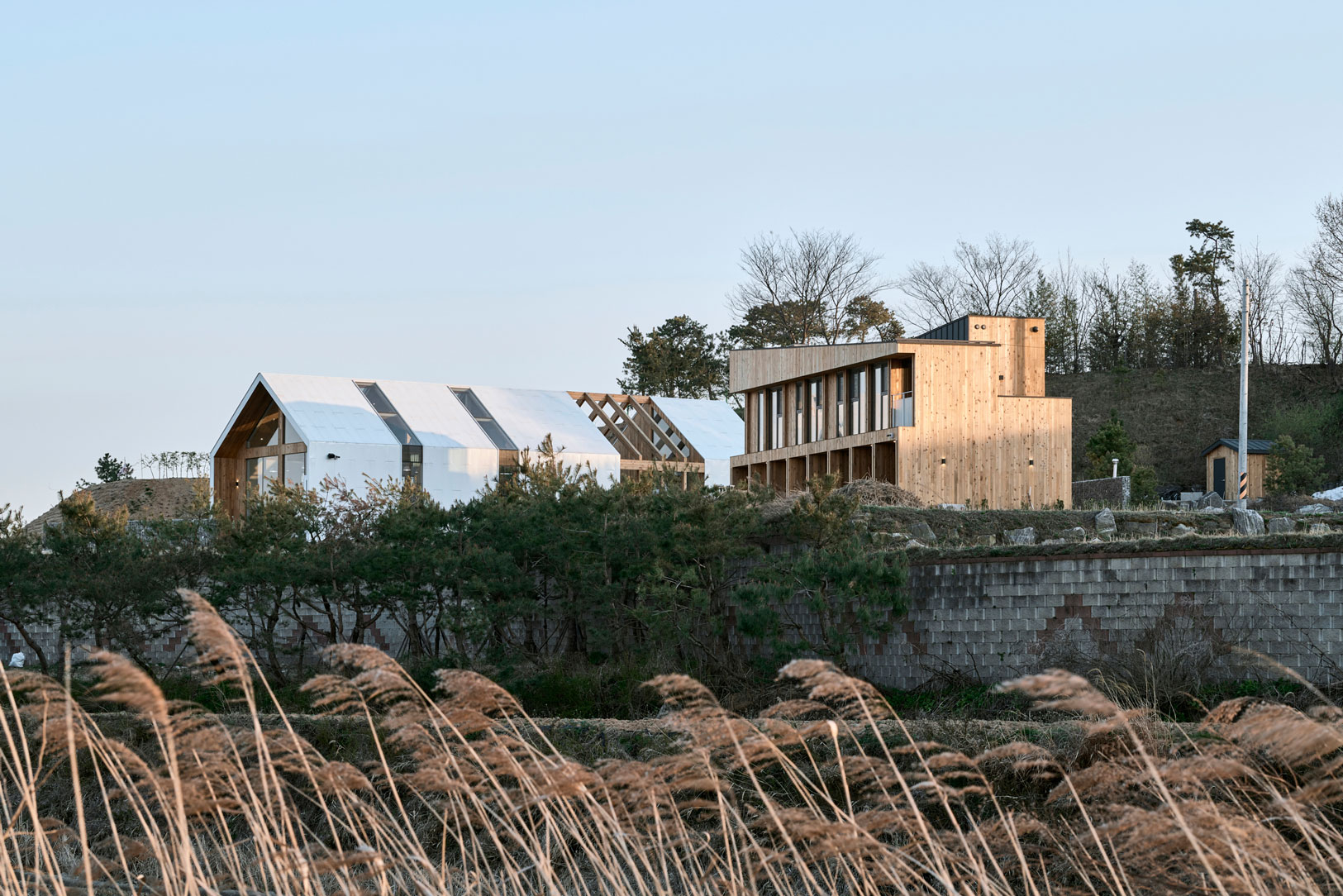 동화를 읽고 마음속 울림에 이끌려 시골에 터를 잡고 집을 짓겠다는 건축주. 평택호를 마주하고 습지를 배경으로 억새가 지천인 이곳은 오래전 건축주의 아버님이 산을 갈아 집터로 조성해 놓고는 아무도 찾지 않아 적막감이 들었다.