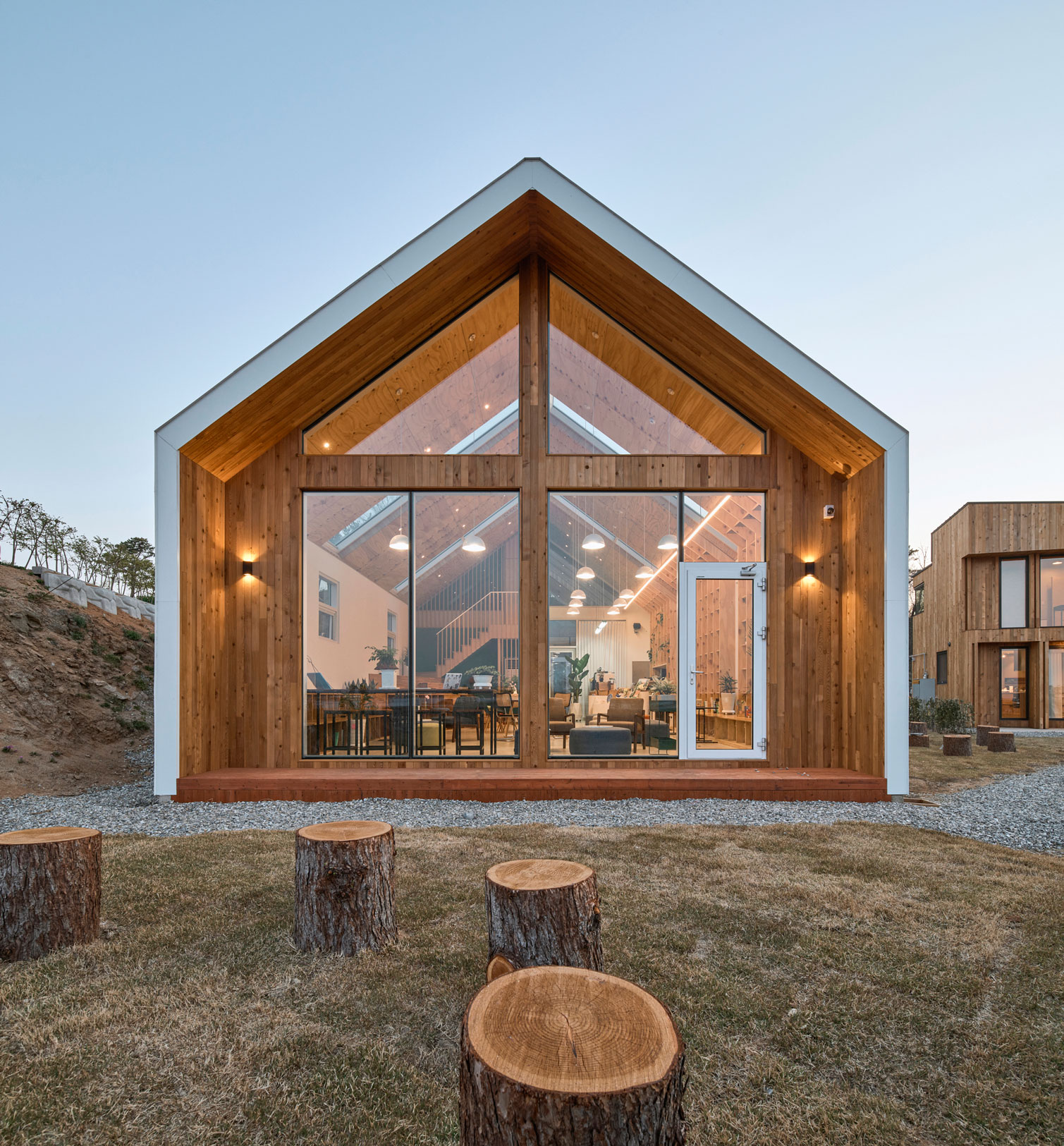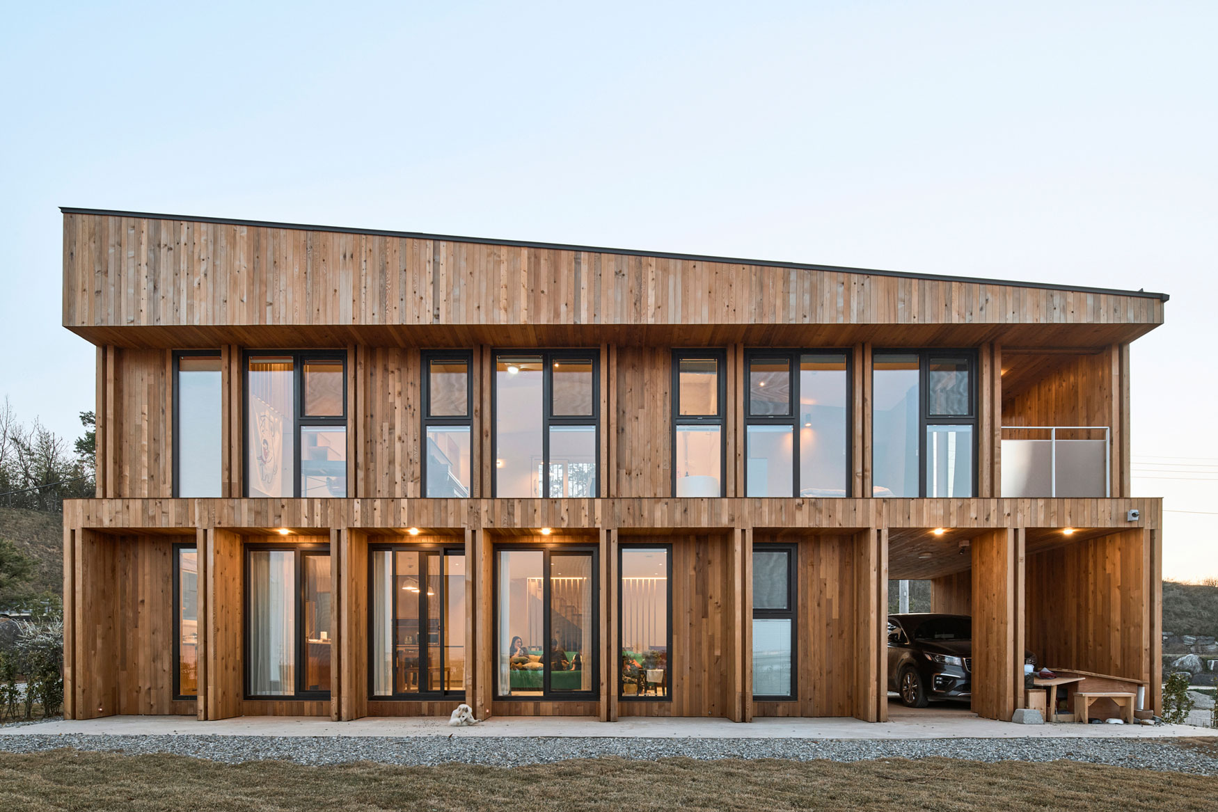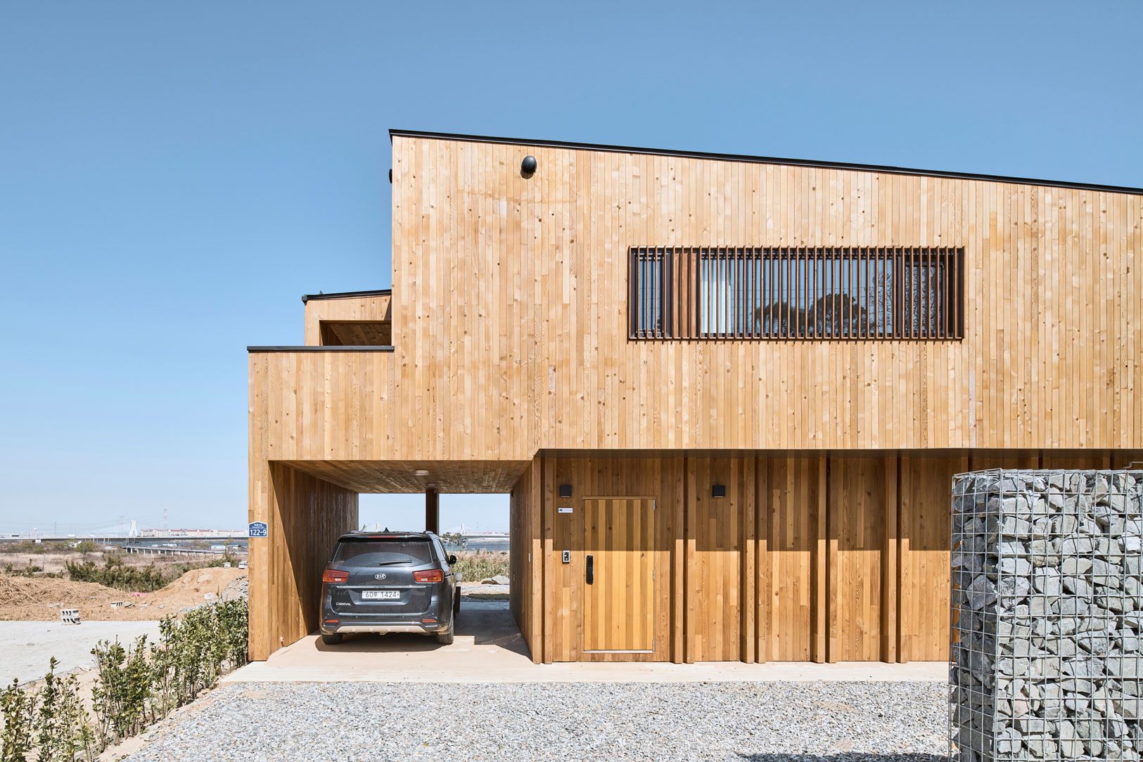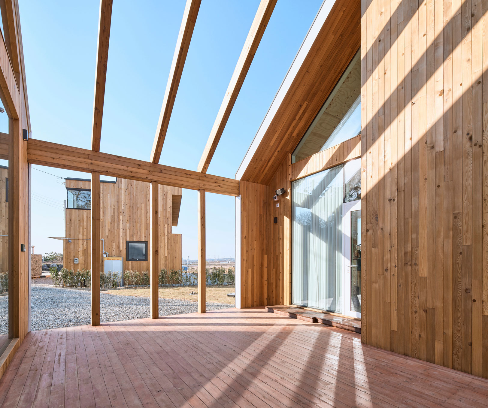 외부마감: 외벽-유절적삼목, 컬러강판 / 지붕-컬러강판