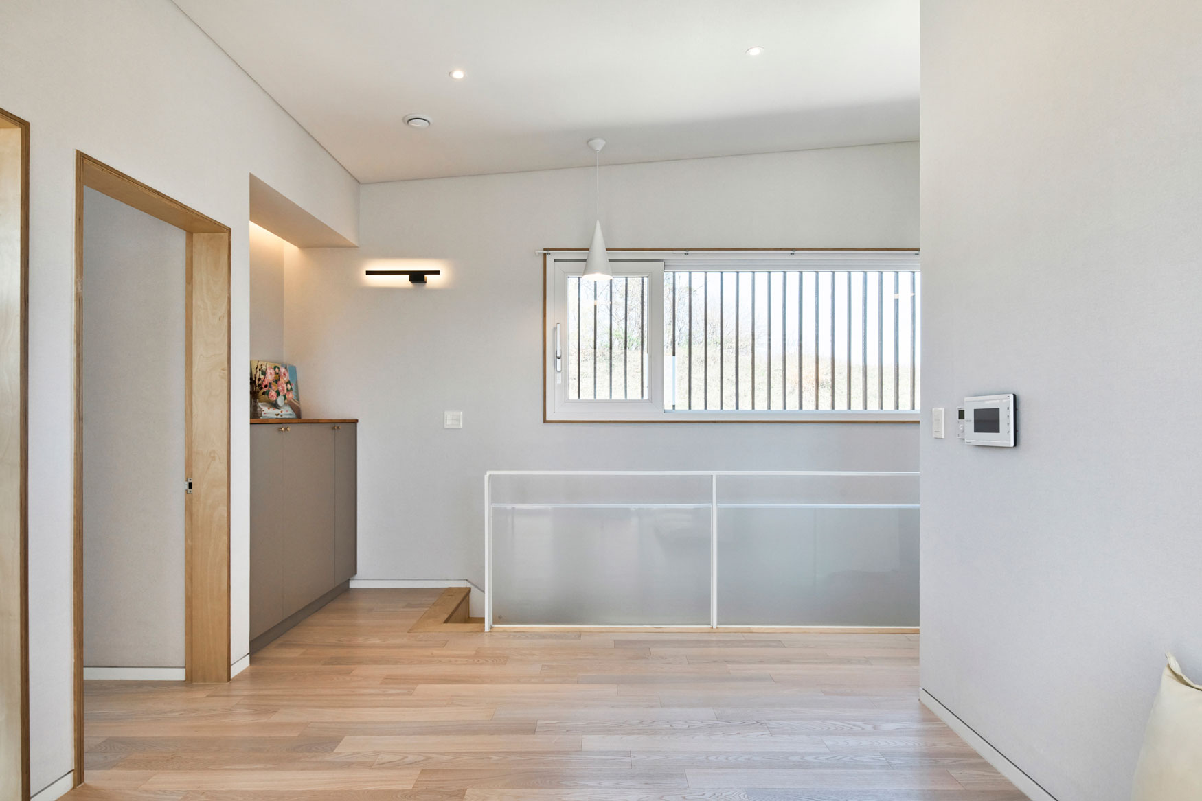 2층으로 연결된 계단은 거실이 확장된 가족실과 맞닿아있다. 이로 인해 복도로 연결되는 방식보다 공간에 좀 더 여유를 줄 수 있었다. 2층은 침실들로 배치되어 있으며, 가족실은 가족원의 변화에 대응하기 위한 예비 공간이 될 수 있다. 또한 부부 침실에 딸린 욕실을 따로 두지 않고 가족들이 같이 욕실을 이용하도록 변기와 세면기, 욕실을 분리하여 배치했다.