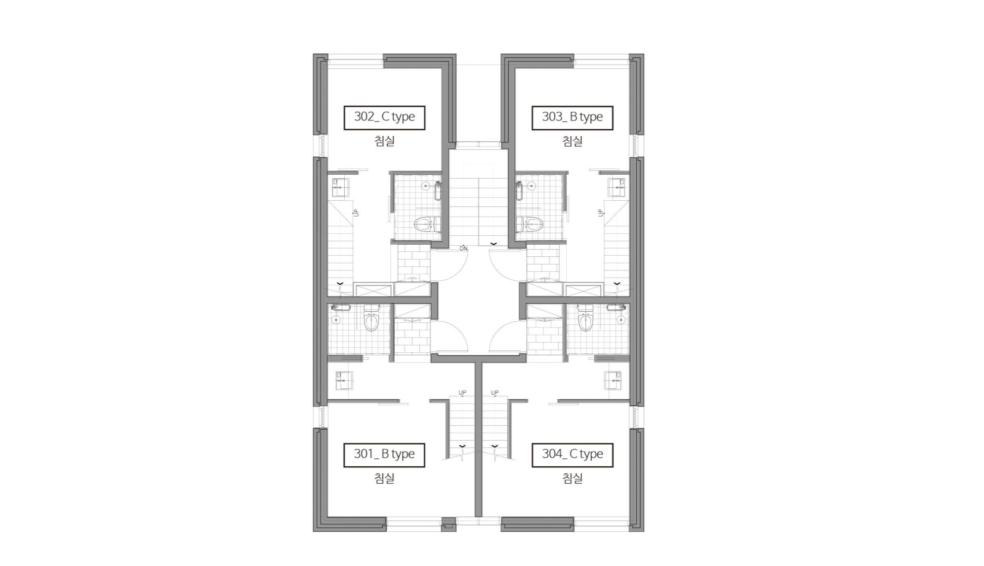 8가구가 독립으로 구성된 묵동 다가구주택은 20~30대의 독립한 1인 내지 2~3인이 거주할 수 있는 스튜디오형과 침실이 구분된 주거 형태를 갖는다.