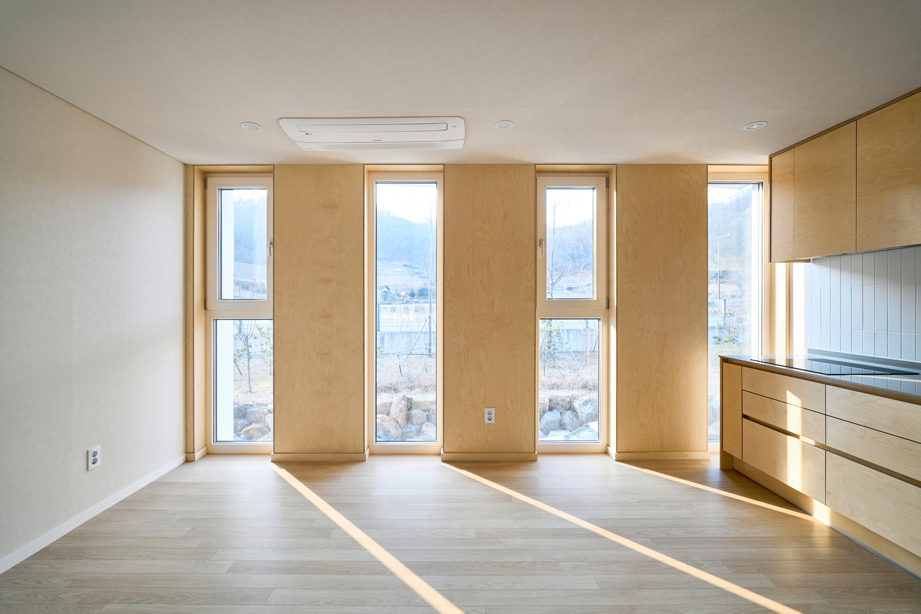큰 창을 내고선 그 앞에 다가서기 저어한 마음에 커튼을 드리우고 뒤로 한발 물러서는 것이 상가주택에서 사는 사람들의 일반적 모습이다. 거기에 깊숙하고 낮게 드리우는 서향 빛을 맞는다면 그 빛은 다만 피하고 싶은 조명이다. 연극이 끝나고 눈으로 쏟아지는 조명에 관객의 표정을 읽을 수 없는 난감함이 더해져 무대 뒤편으로 숨고 싶은 배우처럼, 내가 주인공인 내 집에서 쓸쓸히 퇴장하게 하고 싶지 않았다.