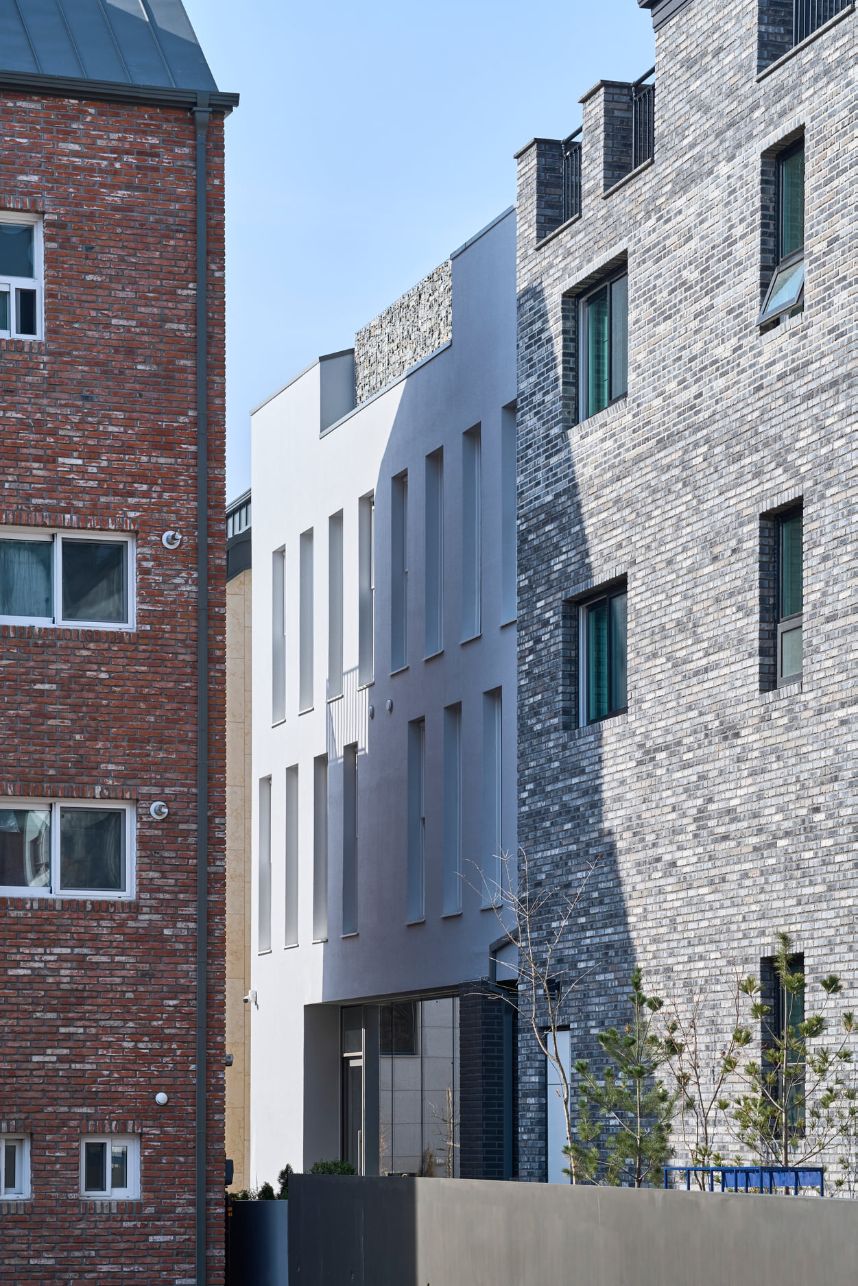 먼저 복층으로 구성된 네쌍둥이 같은 4가구를 계획하였다. 4집 모두 2층에서 출입하게 되어 엘리베이터 배제가 합리적 선택지가 되었고, 4집 모두 다락과 옥상정원을 가질 수 있어 임대인과 임차인의 위계를 지우고 동등한 거주 환경의 물리적 조건을 만족하게 했다.