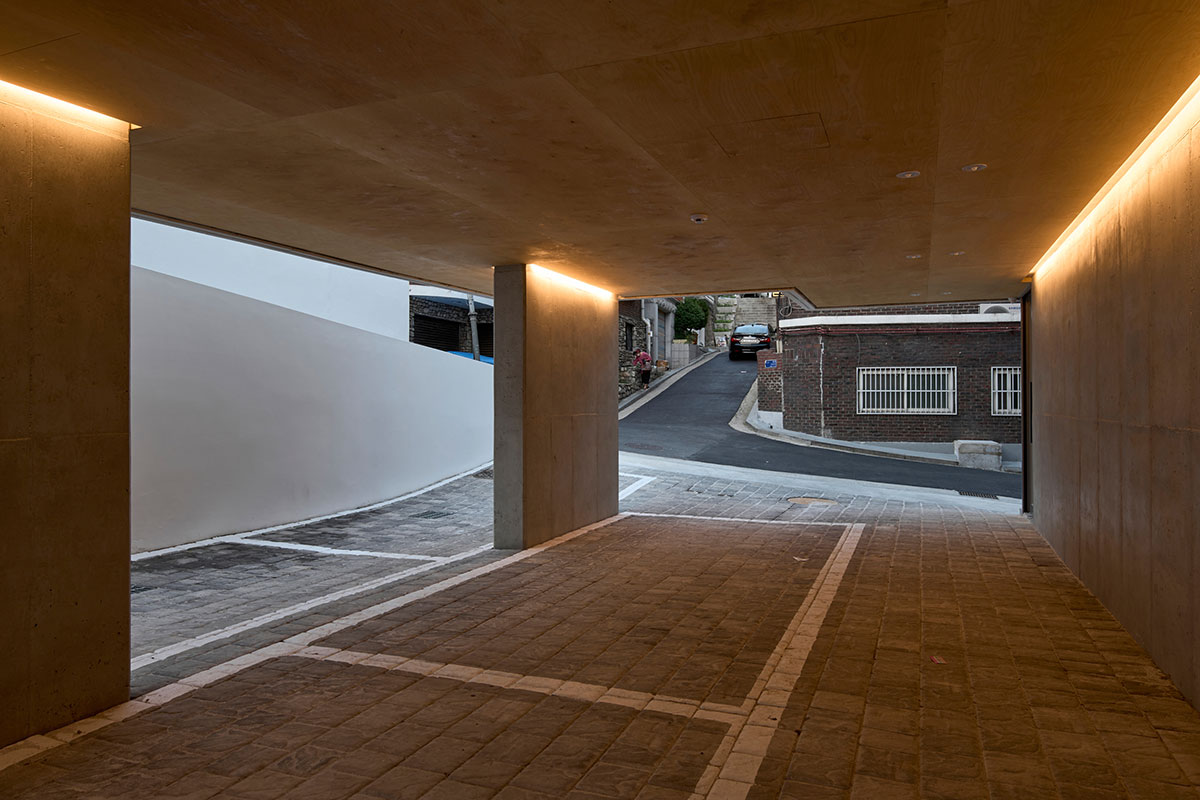 우리는 그 방법의 하나로 성곽길로 이어지는 오래된 골목길이 되길 기대하며, 길이 더 잘 보이도록 ㄱ자로 꺾인 창을 두었다.