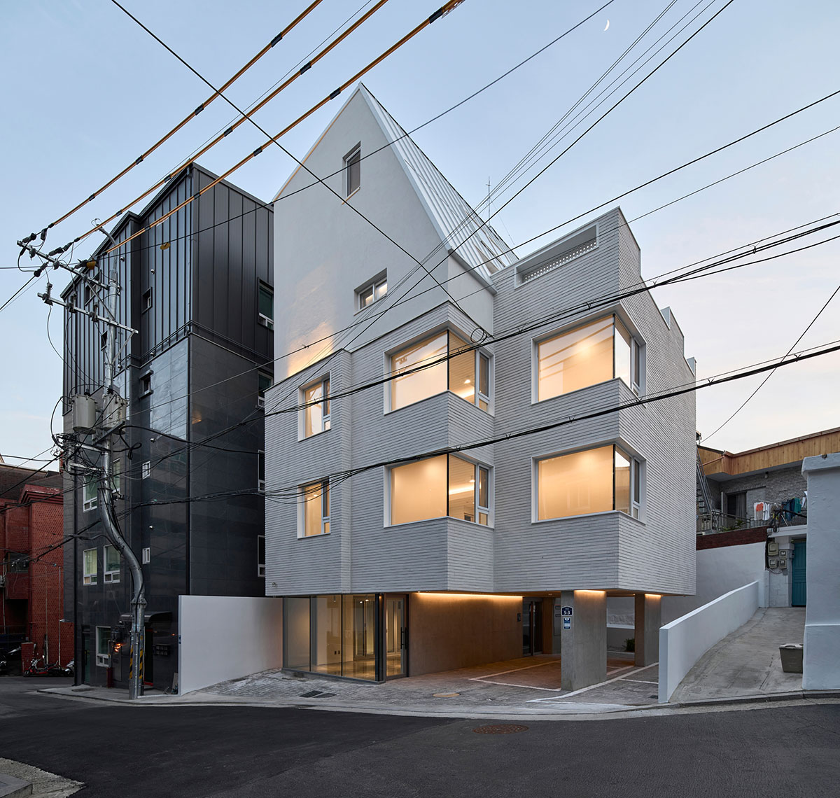 대지에 들어선 작은 공동주택은 도심에 직장이 있는 청년을 대상으로 한다.