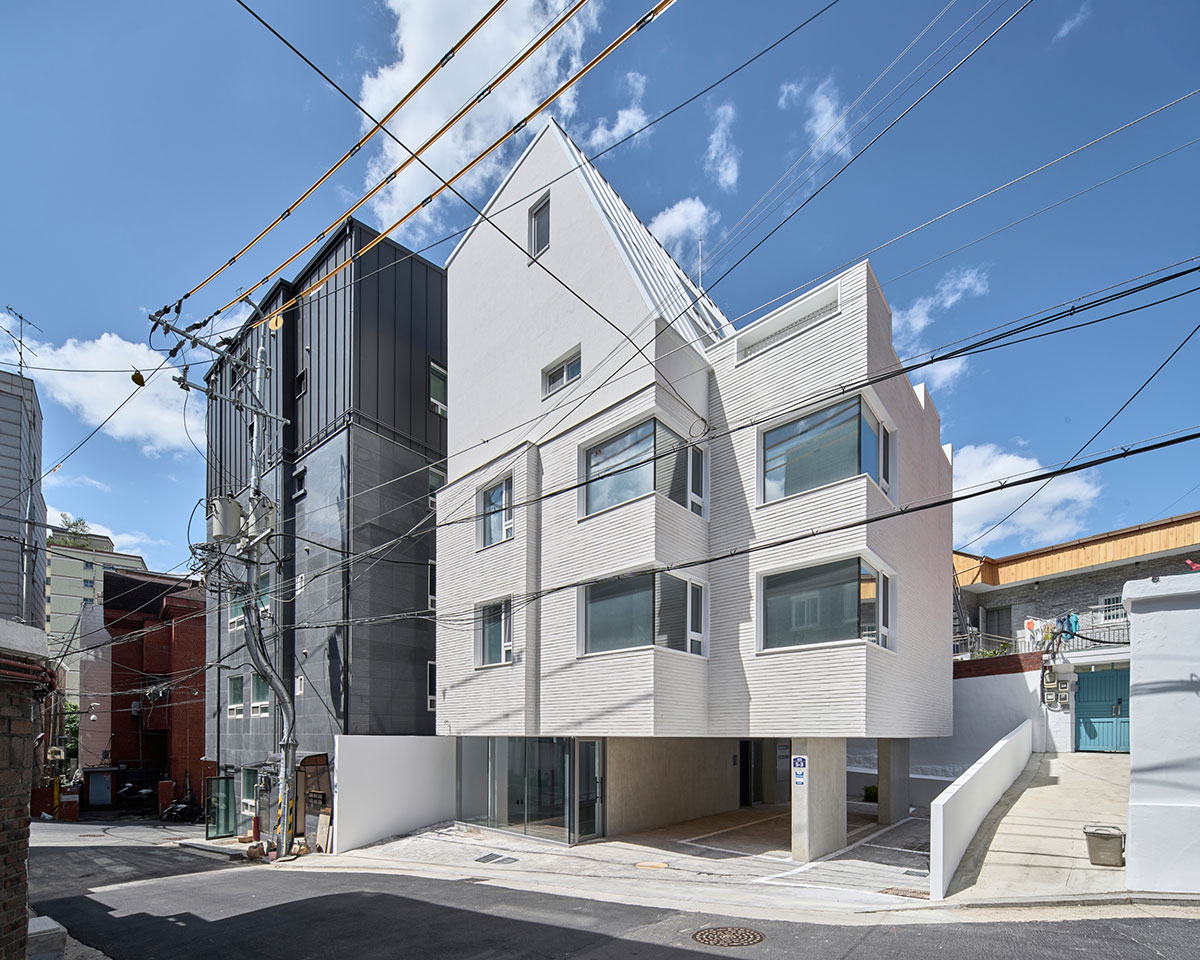 대지에 들어선 작은 공동주택은 도심에 직장이 있는 청년을 대상으로 한다.