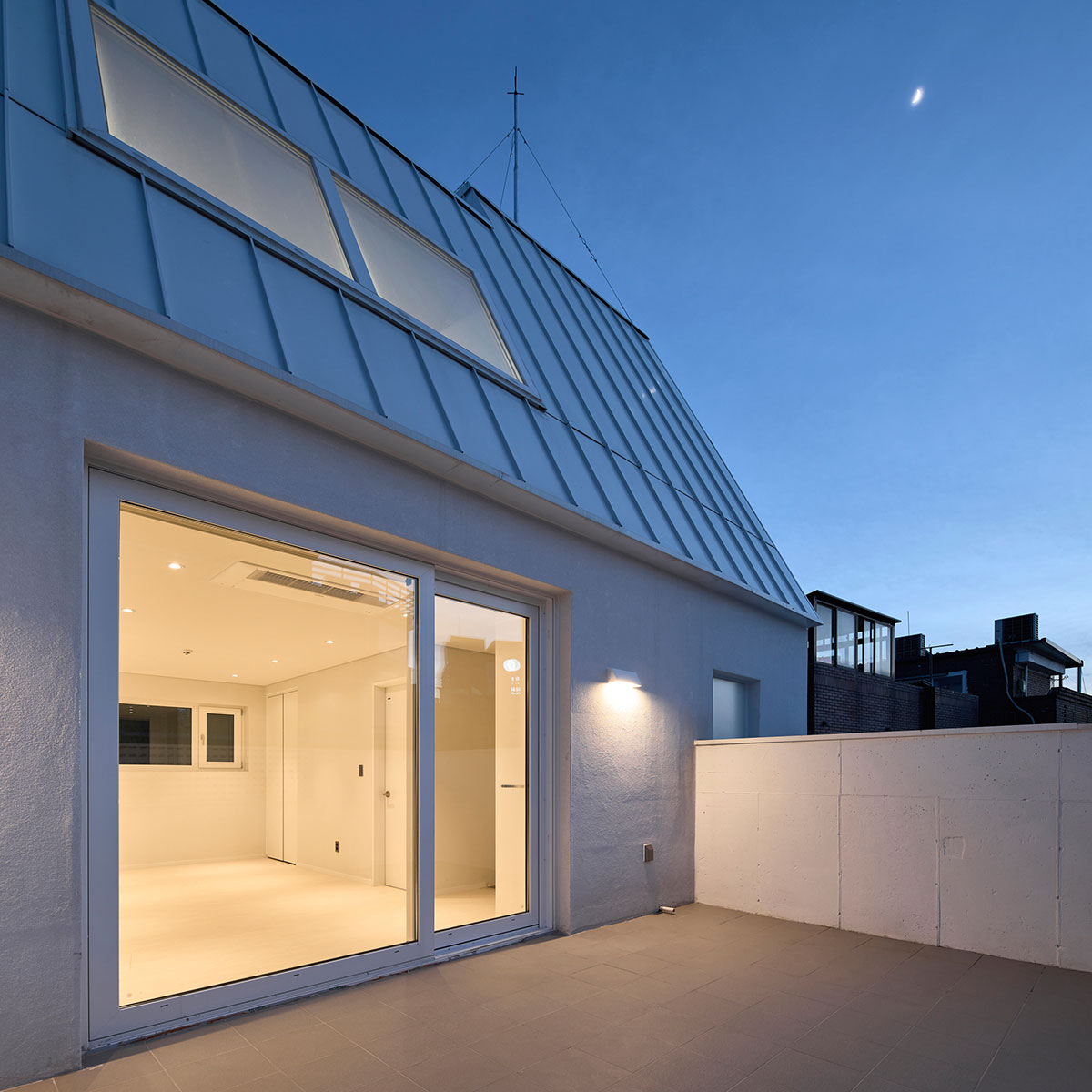 더해서 밝은 색의 이 집이 동네를 밝히는 등대 같은 모습이었으면 좋겠다는 의도도 있다.