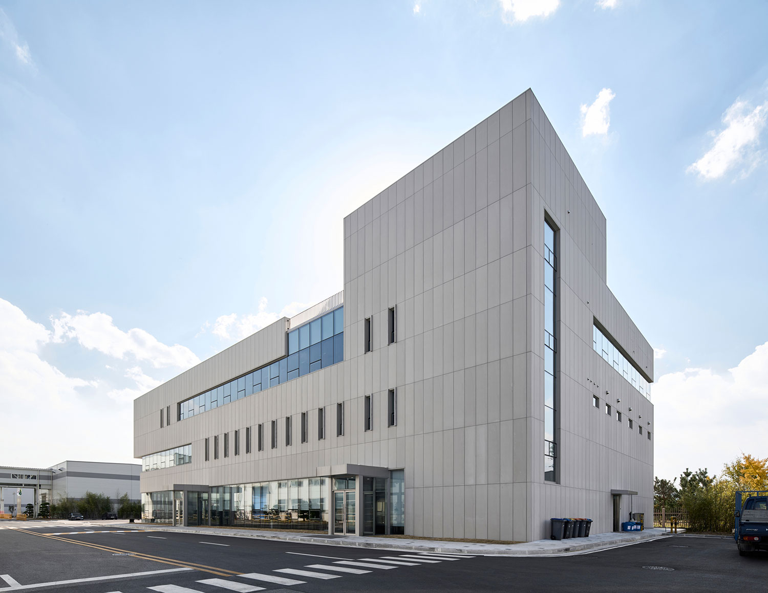 단지 내 산업시설들은 사람보다는 설비들이 거주하는 집, 기계들로 가득한 공장이다. 기계와 사람들이 뒤섞여 있는 환경을 적절히 분리하고 업무의 성격이 다른 근무자들도 재배치하며 대상지의 입지를 고려했다. 대상지 주변 건물들과 조화롭게 형태를 나누고 기능들이 보일 수 있도록 입면 요소를 달리한다. 통합된 업무환경이 구축되고 경관에도 변화가 생긴다.