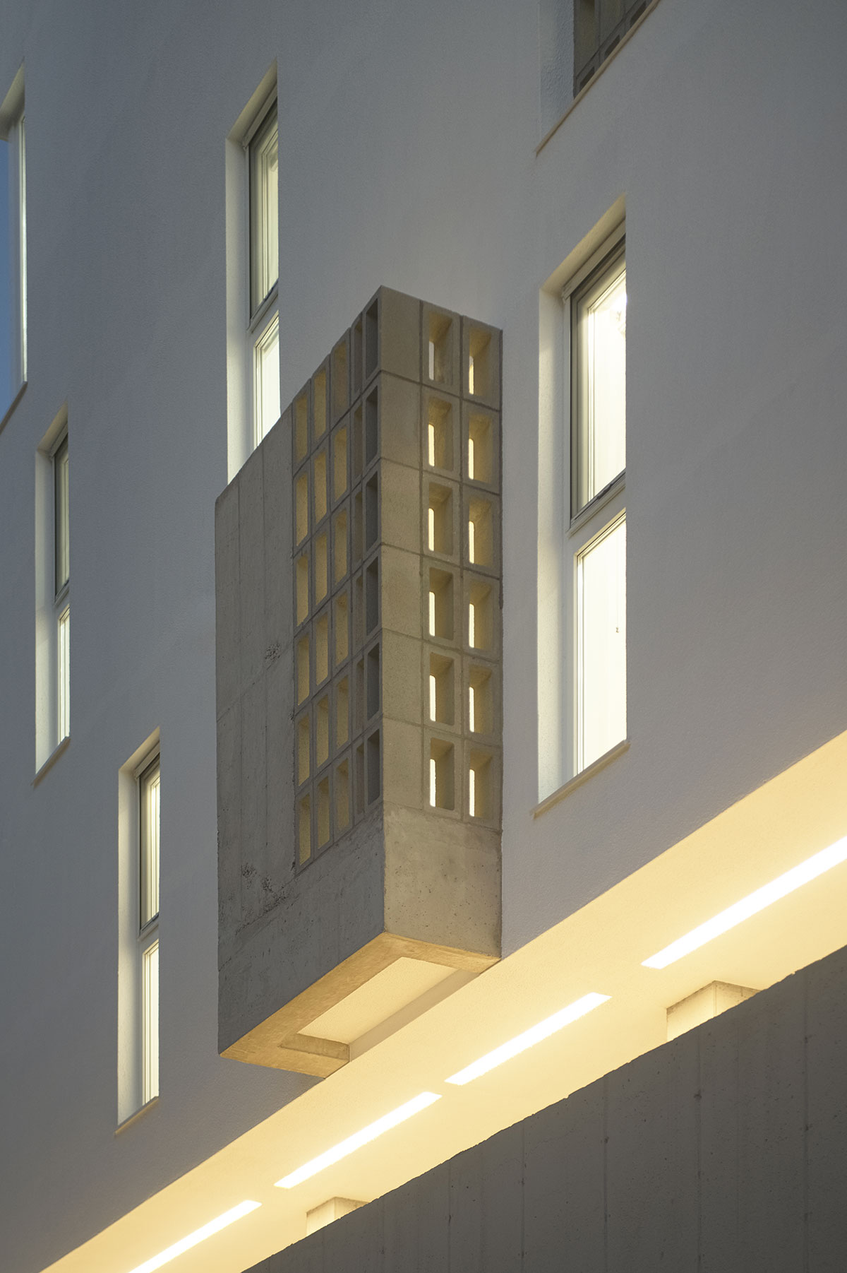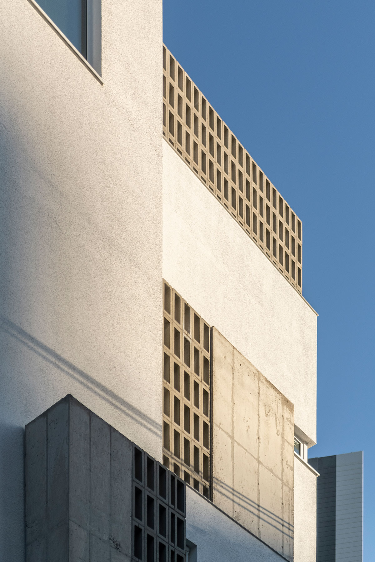3~5층 각 주거공간의 베란다는 위치와 크기가 저마다 다른데, 공통적으로 2.4m 높이의 솔리드한 벽과 오픈된 큐블럭이 베란다를 둘러싼다. 이는 자연과 만나는 장소가 주변 시선의 방해 없이 오롯이 사용자를 위한 곳이 되기를 기대함이며, 오픈된 큐블럭을 통해 집의 개성을 드러내고 이웃과 만나는 소통의 구멍이 되기를 의도한 것이다.